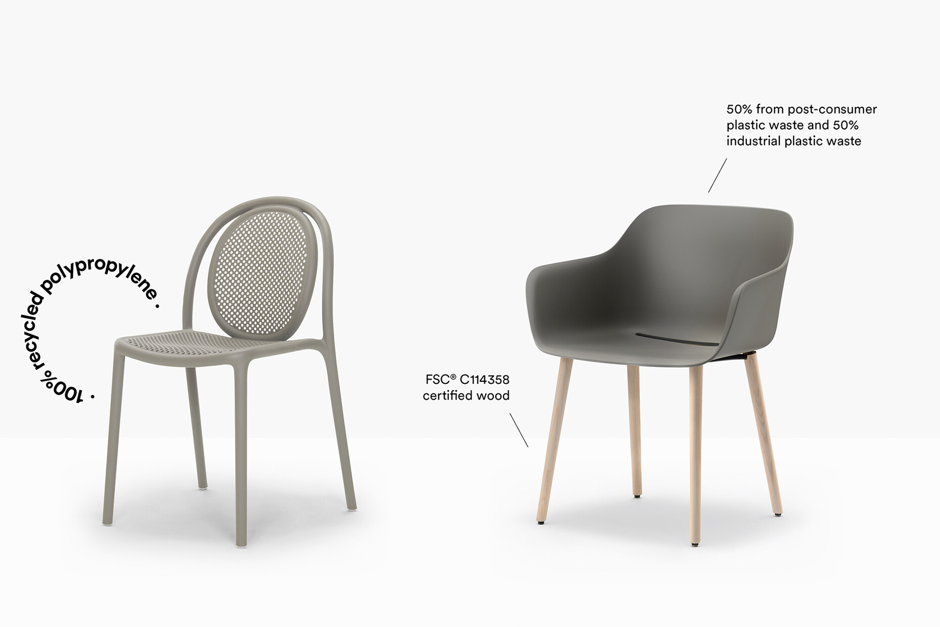 Reducing one's own carbon footprint, rethinking supposed waste from cultivation, construction and consumption, and attributing a new use to natural materials were strong approaches in the works of the creatives at the Stockholm Furniture Fair. The products and research results are less experimental than one might expect. Instead, the will to find alternatives for the classic processes of the furniture industry is clearly visible in the works. And even the established companies did not have to search long for environmentally compatible products and concepts: be it airy stand architectures made of fabric panels or products made of recycled material, such as Charlotte von der Lancken, who further developed her "Tinnef" coffee table collection for Skandiform with the "Black coal" version made of recycled medicine and food containers. Pedrali, a sustainable company since its foundation 60 years ago, already calculates its corporate carbon footprint and has also obtained UNI EN ISO 14064-1:2019 certification in the process. "By analysing how much CO2 we produce, we can determine the impact of our entire production cycle on the environment. Based on concrete data, it is thus possible to set continuous, monitorable and thus achievable improvement targets," says Giuseppe Pedrali.