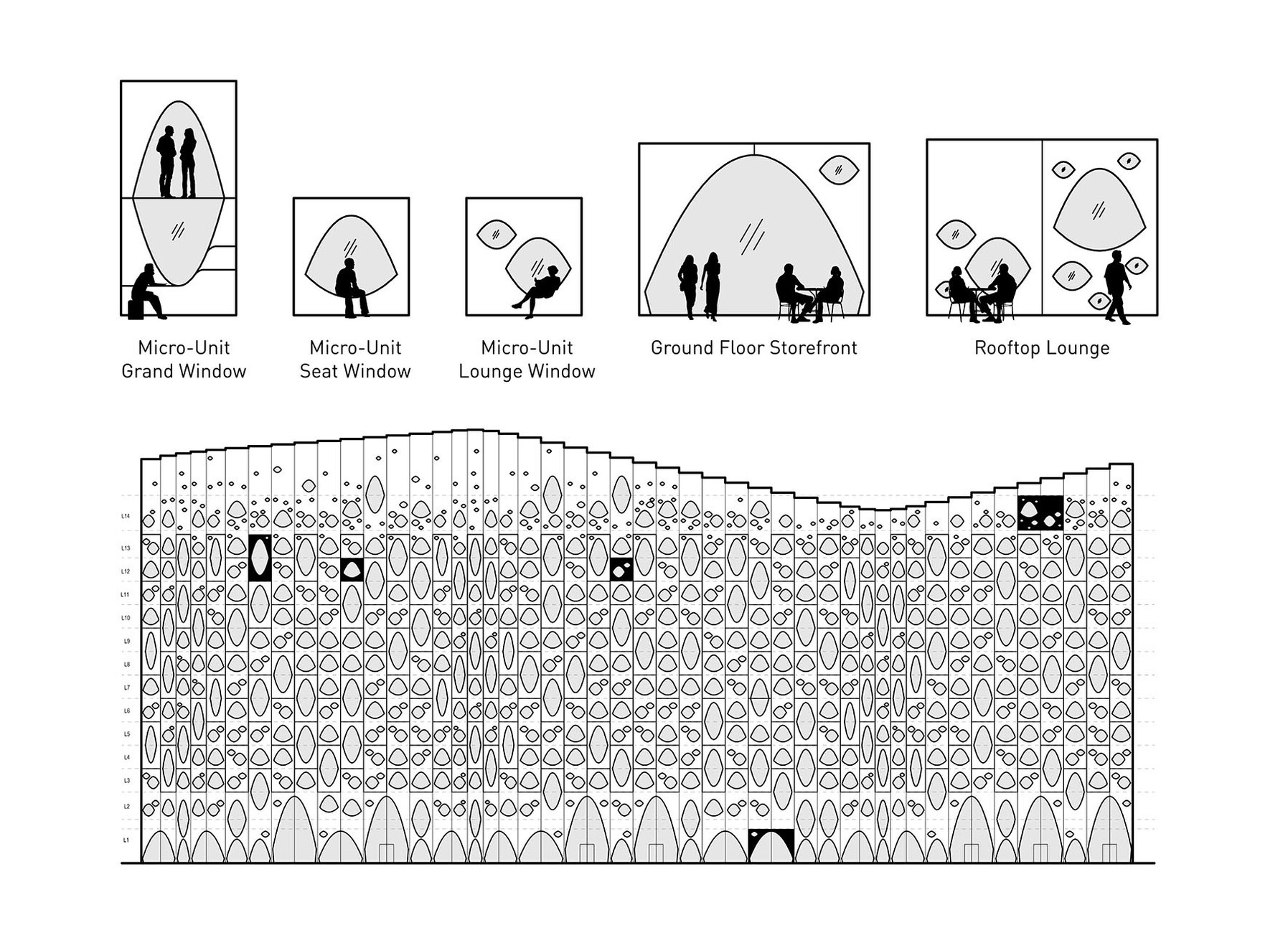 Katharina Cichosch: The Populus has its role model in its name: A regional species of poplar tree was the inspiration for the eye-catching façade with its "peepholes", which was placed in front of the house like a shell. How did Jeanne Gang or how did you come up with this idea together?