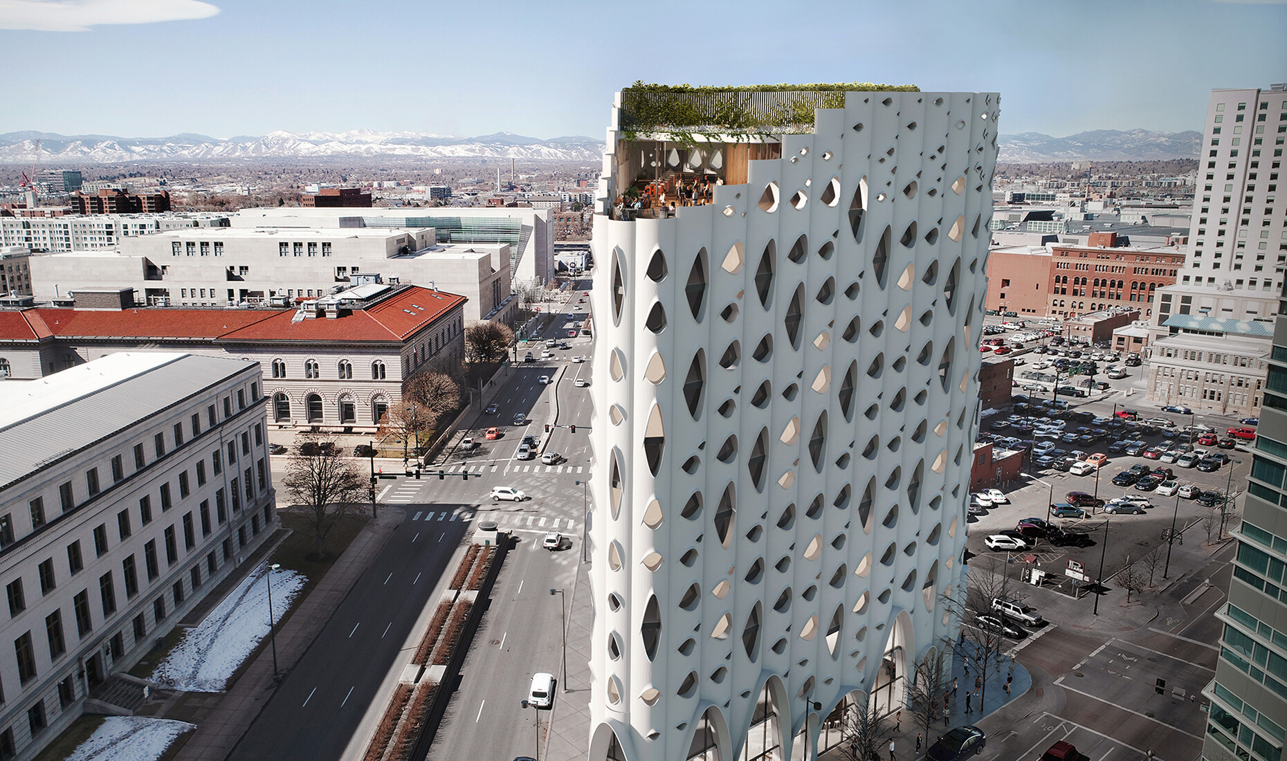 The Populus is located opposite the Denver Art Museum and the Civic Center Park, but also in the neighbourhood of a rather meaningless skyline, similar to those found almost everywhere in the world. To what extent did the surroundings of the future hotel play a role in the architectural work?
