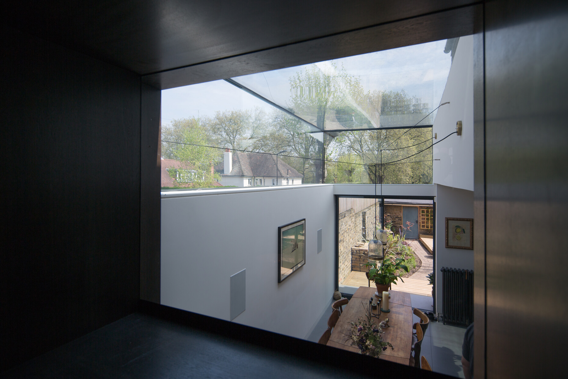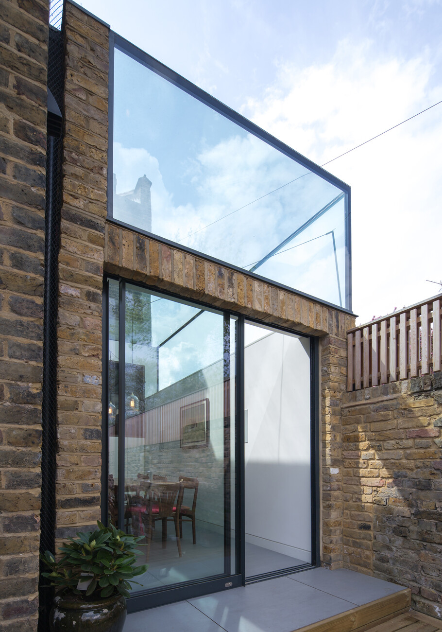 From the outside, the typical brick building in London looks no different to its comrades standing in rank and file beside it –were it not for the frameless glass box that has settled itself on top of the old walls. The team behind the delicate glass structure and the entire renovation of the house is London architecture firm Studio 304, which has already won a number of accolades for its coversions, which are as carefully considered as they are original.
