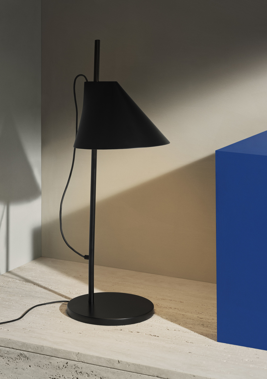 With “Yuh” for Louis Poulsen, the Danish-Italian design duo Stine Gam and Enrico Fratesi have created a luminaire that charmingly references a classic of Danish lighting design while remaining entirely distinct: For the design, GamFratesi took an intensive look at the luminaire AJ by Arne Jacobsen created in 1957 – a classic piece in the Louis Poulsen product range. “Yuh” is sold as a floor, table or wall luminaire in the colors black and white.The lampshade, which is flared on one side, also quotes AJ. But here GamFratesi is also following in the footsteps of another master of Scandinavian lighting design – Poul Henningsen, from whose works Stine Gam and Enrico Fratesi likewise drew inspiration for “Yuh”. The adjustability of the lampshade in all directions is a feat of engineering. It allows “Yuh” to create a pleasant atmosphere in numerous lighting situations with glare-free, indirect light.