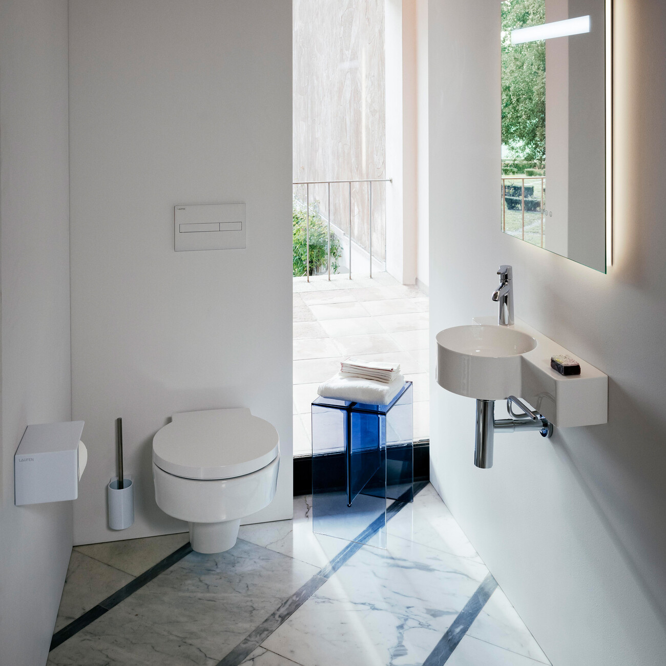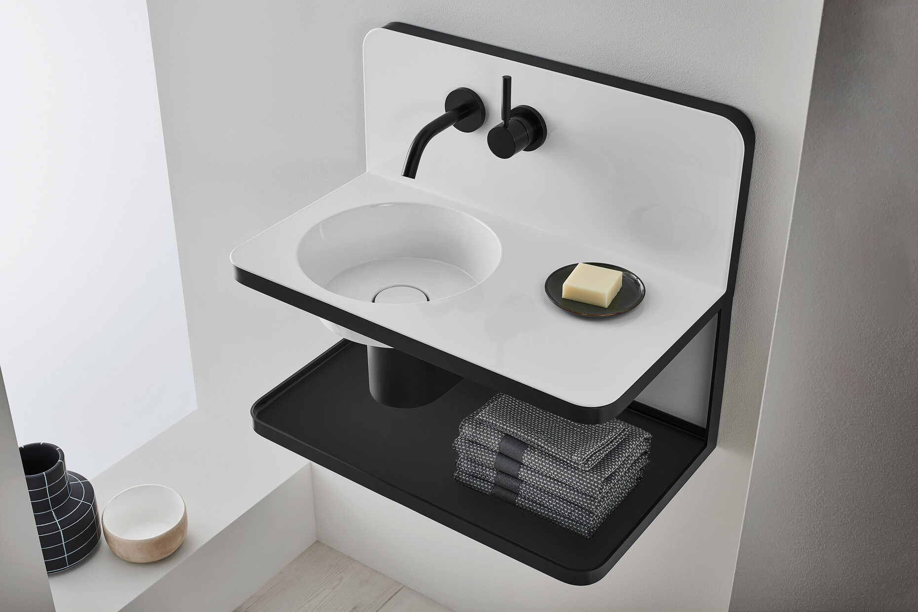 Jury statement: The “VAL hand washbasin” by Konstantin Grcic for Laufen is the logical continuation of his acclaimed sapphire ceramic series into a mini washbasin for guest toilets. The nature of a compact washbasin has been interpreted in a completely new way, giving it a relatively large storage surface.