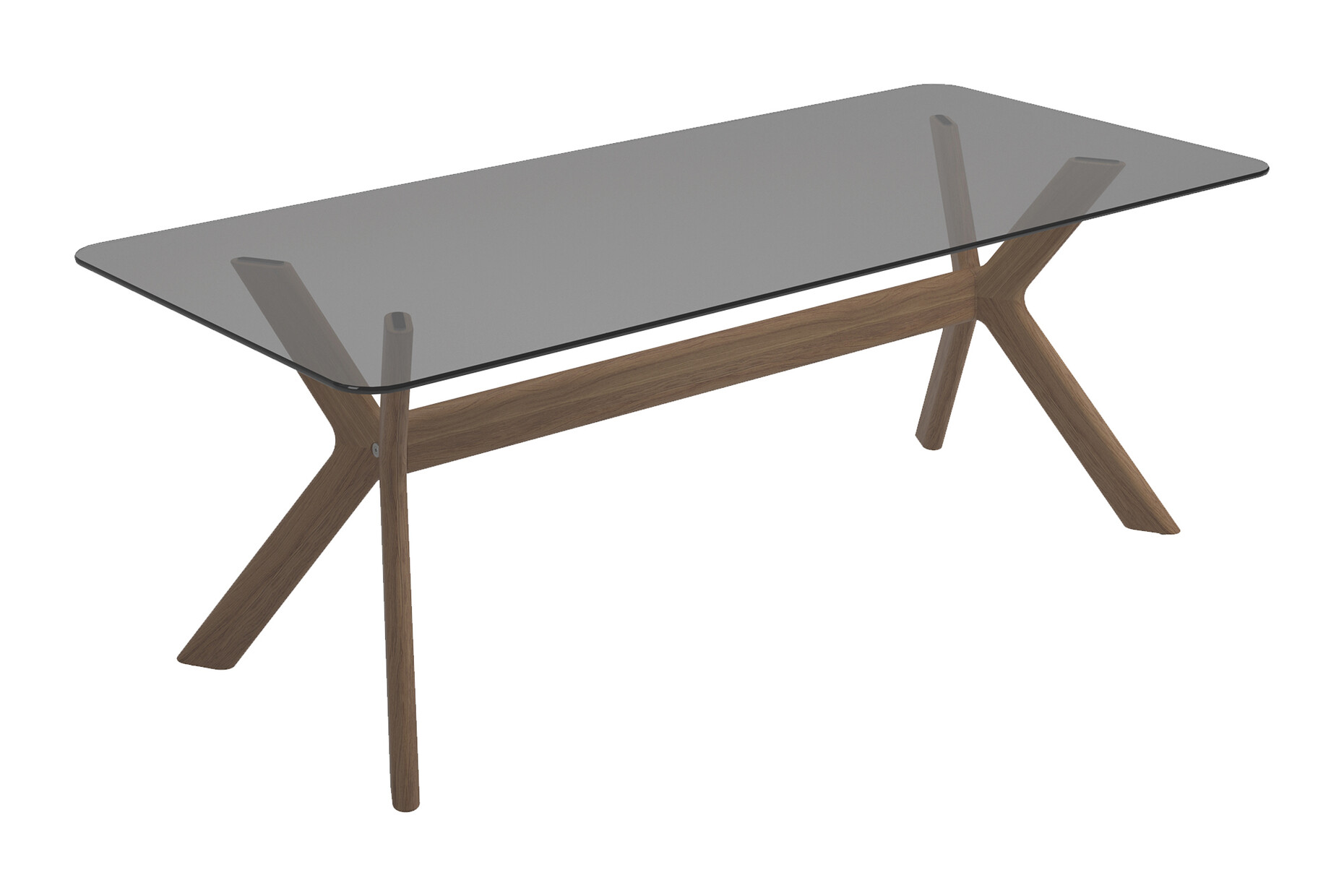 Jury statement: A table frame like a wooden sculpture: With its glass top, the “X-Frame” outdoor dining table by Henrik Pedersen for Gloster allows diners to take in the magnificent teak base while eating.