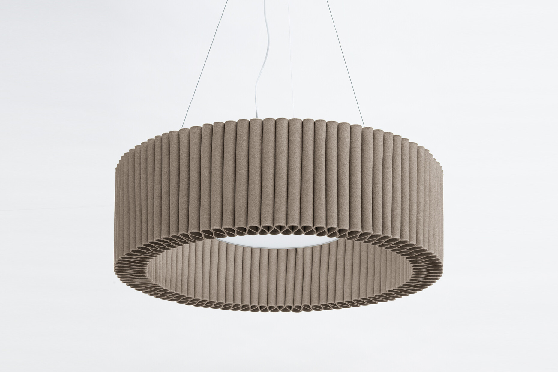 Jury statement: Hey-Sign describes its new “Welle” product as a “ceiling object”: a combination between an acoustic element and a luminaire. The ring made from pleated woolen felt certainly does have an artistic vibe.