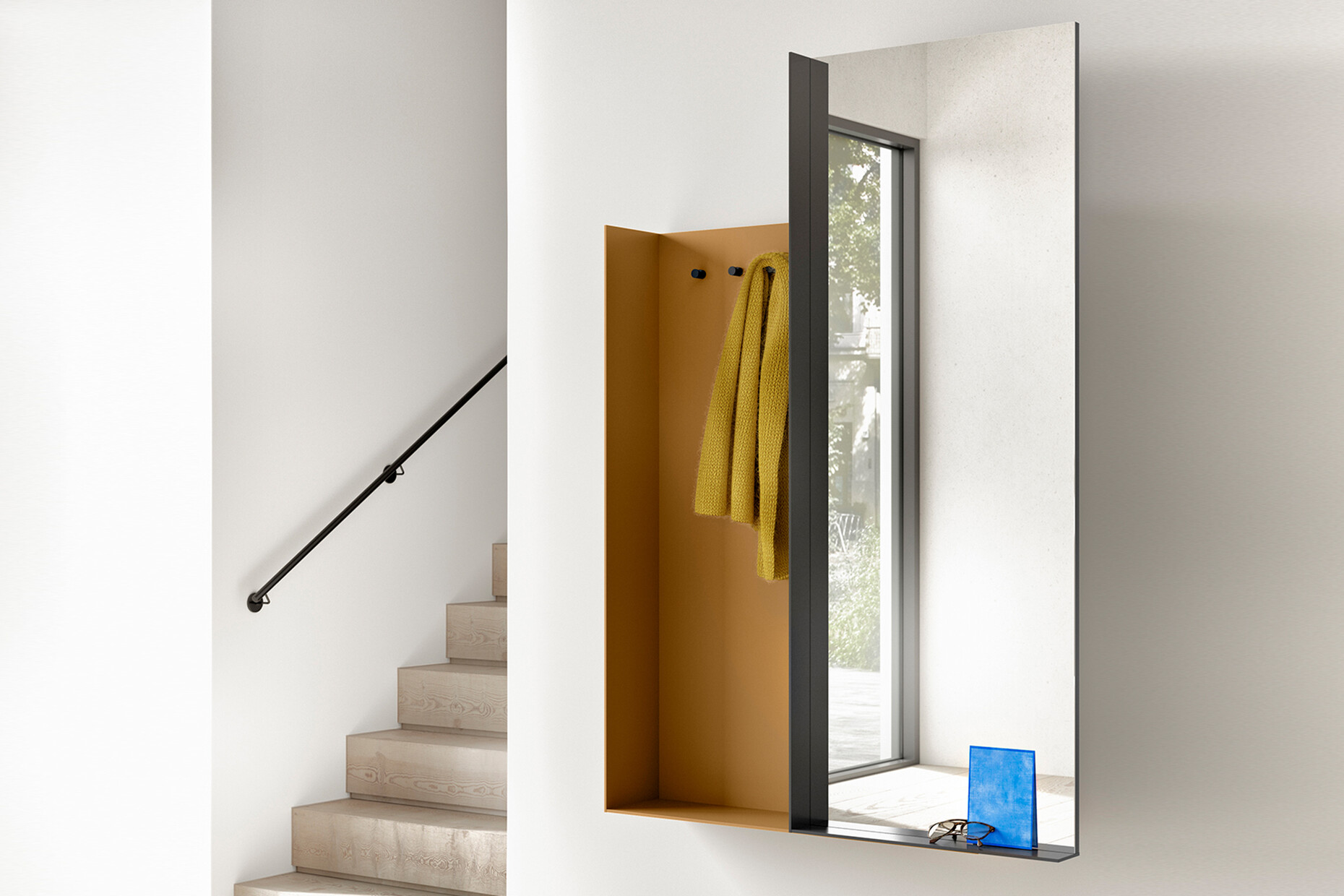 Jury statement: Berlin-based designer Hanne Willmann, Creative Director at Interlübke, designed “Levi” for the company – a coat rack, mirror, and three-dimensional wall object in one. This makes “Levi” an effective means for combatting bleak hallways.
