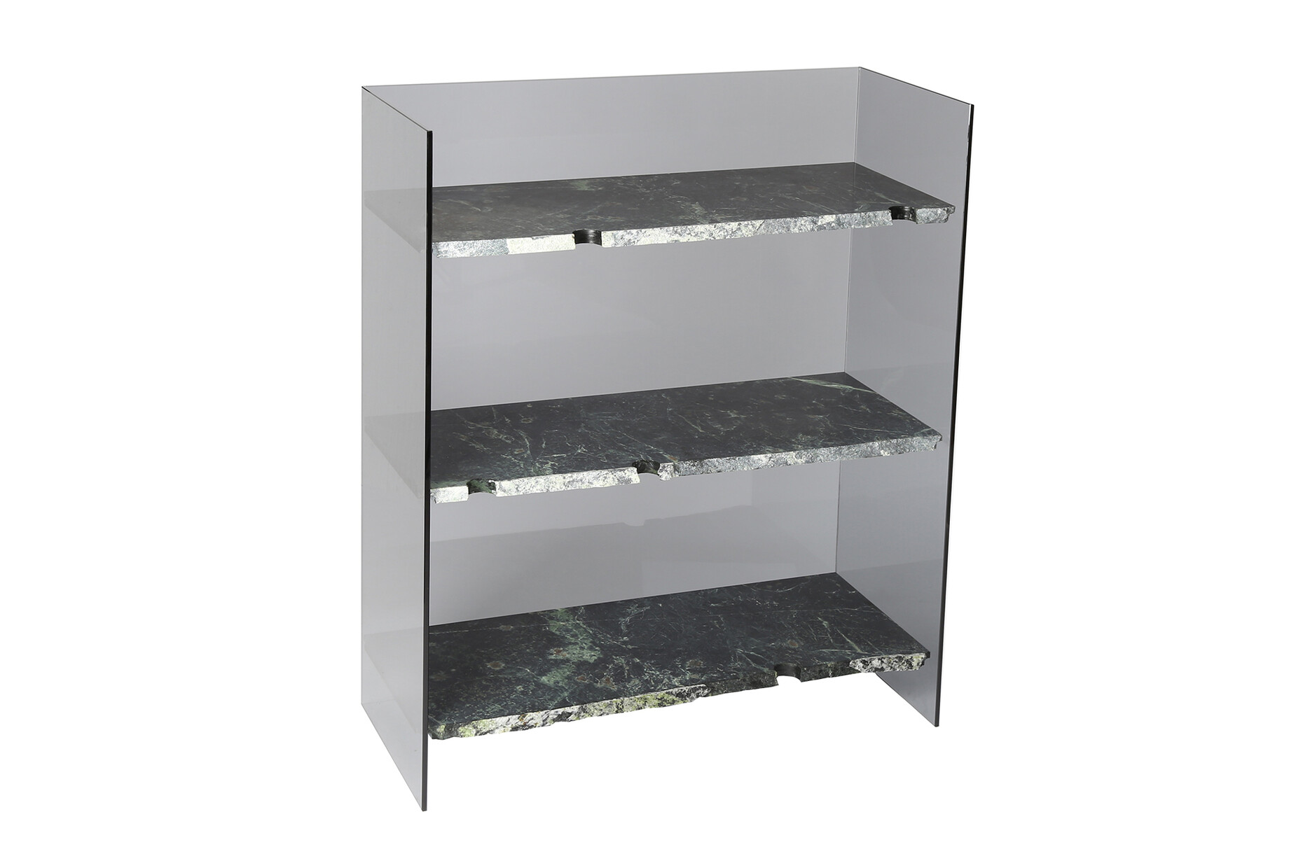 Jury statement: Ferréol Babin has inserted irregularly cut marble shelves into a frame made of beautifully finished glass for his “Brut” shelving system, in this way enhancing the effect of the two materials: The glass seems more refined and fragile, the stone harder, heavier, and more primordial.