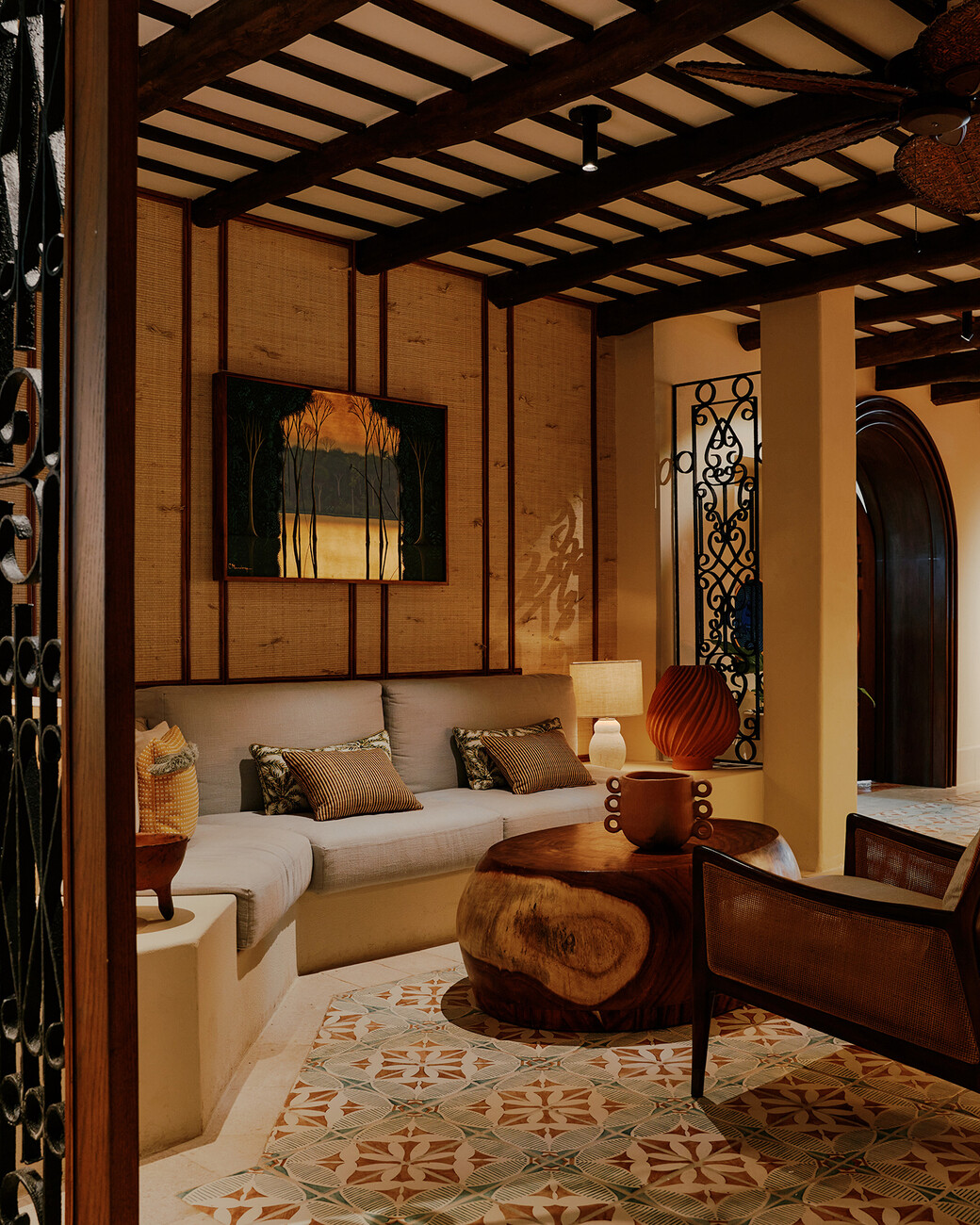 Tara Bernerd: Textiles played a particularly big role at Maroma, A Belmond Hotel. We were looking to retain and enhance the beauty of Maroma’s original character, whilst simultaneously incorporating a contemporary elegance and a warmth that also has a sense of home. In essence, we wanted to create something that was effortlessly serene and had the feeling of a chic home. As with so many of our projects, we worked closely with local artisans to produce handmade fabrics and woven details that celebrate the region’s craftsmanship. The result is a harmony of texture, pattern and colour that feels authentic to its setting.