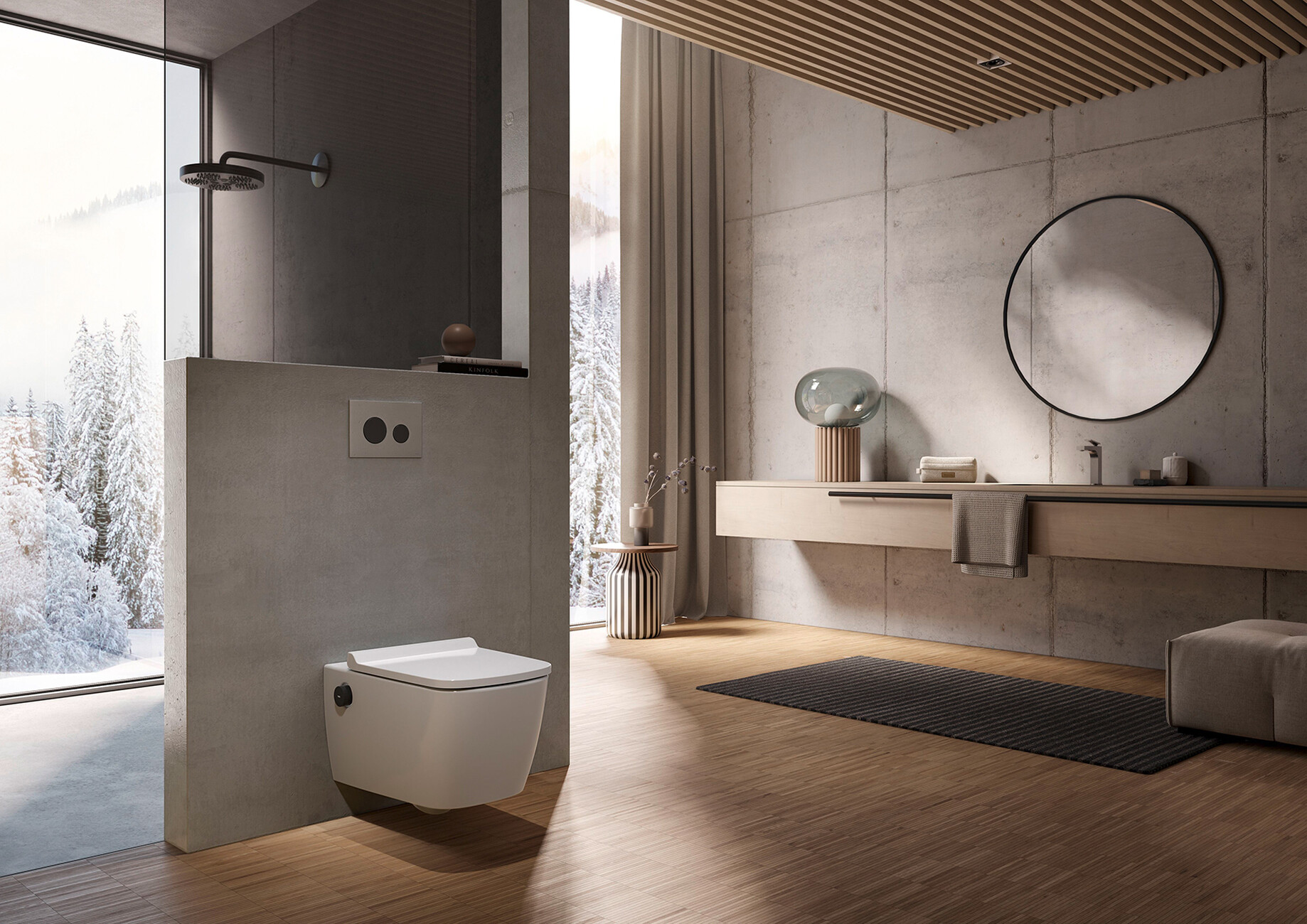 "TECEneo" is a shower toilet designed for the essentials. With intuitive operation via two rotary knobs on the side of the WC ceramic appliance, both the strength and temperature can be adjusted. A jet of water that is as rich as it is soft cleans quickly and particularly thoroughly, with water consumption comparable to that of a water-saving tap. Before and after each use, the shower bar is completely rinsed with fresh, clear water when it is extended and retracted and thus pre-cleaned and post-cleaned - for maximum hygiene. The "cyclon flush" then rinses the ceramic effectively and quietly with a powerful whirl. Hygienic cleanliness is promoted with the rimless design and the dirt-repellent "cera clean" surface. The ergonomic "Slim" toilet seat has a lid with an automatic closing mechanism and can be easily removed for cleaning purposes. As the toilet does not operate electronically, but purely mechanically via water pressure, it requires hardly any maintenance. This also has a positive effect on installation time. Just as well thought through: the North Rhine-Westphalian manufacturer also produces the "TECEneo" with a pure cold water function and as a conventional toilet. This means that several bathrooms in the house can be equipped with toilets with different functions to create a uniformly purist aesthetic. (eb)