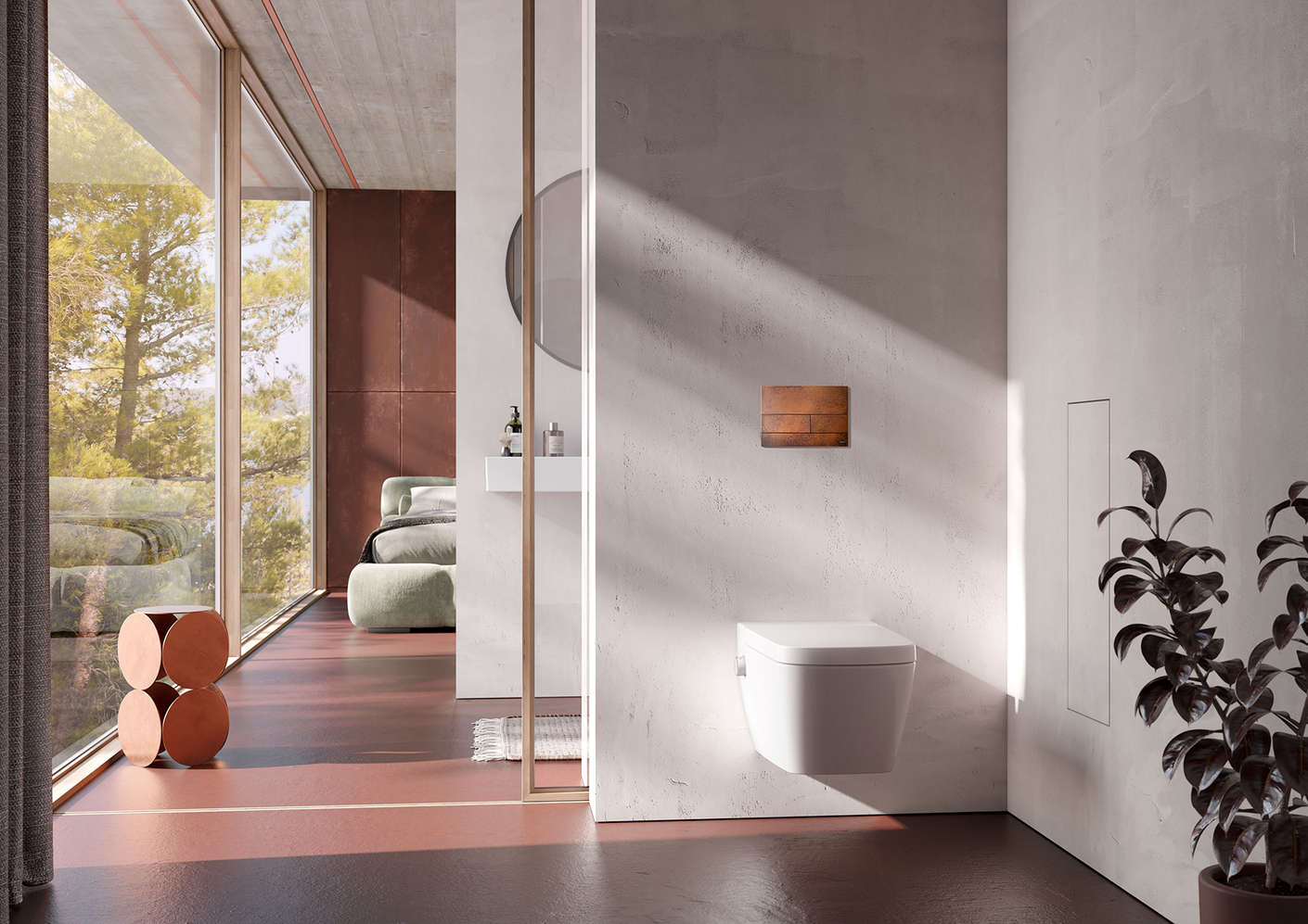 While vintage industrial chic has conquered almost all design areas, from the kitchen to furniture and wall design, the bathroom has so far been left out. Tece is now bringing the cool corten steel look into the quiet little bathroom. The straight-lined "TECEsquare" flush plate not only impresses with its precise workmanship, smooth feel and flat design - panels made of manually corroded steel surfaces create unique pieces for individual bathroom designs. For this purpose, the sturdy stainless steel fixtures are refined by hand in a special process in an individual rust look to create design objects that, as unique pieces, ensure a modern yet unassimilated bathroom aesthetic. A special sealing of the rust-pigmented surface is Tece's answer to the high demands placed on WC push plates, which are stable, resistant and easy to clean despite their extravagant look. Other metal surfaces in brushed, polished or lacquered versions as well as easy-care, smooth glass surfaces round off the collection. "TECEsquare has always had a strong architectural claim with a minimalist design. So it was obvious to develop a surface for the collection update that corresponds to the building material Corten steel, which is very popular in architecture," says André Meiermann, Product Manager Sanitary Systems at Tece.