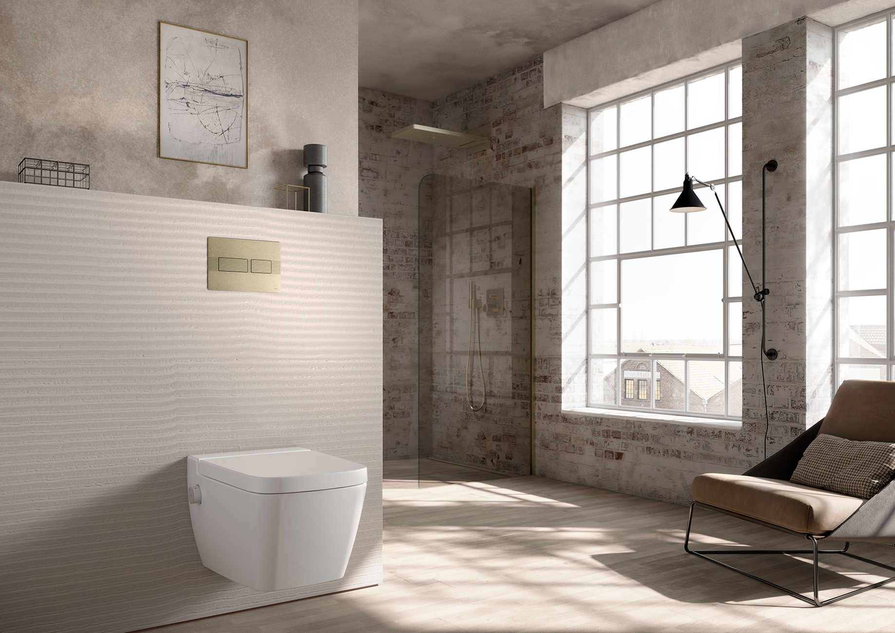 The robust and at the same time finely structured surface of the "TECEsolid" toilet push plate for dual flush technology blends in perfectly with the surroundings of public, semi-public and private bathroom areas with high design standards. The stainless steel material in the graphite and brushed nickel versions with line structure, as well as in the brass and brushed bronze version with rhombus structure, is a visual and haptic experience for users, sets subtle accents and ensures a finished look. "The WC actuation with relief surface is inspired on the one hand by architecture in which structured façades are an expression of modern aesthetics, and on the other hand by current trends in bathroom design, which include fittings with engraving, but also ceramics with structural design," says André Meiermann. Like "TECEsquare", the extremely slim "TECEsolid" tiles can be combined easily with all Tece flush tanks. Particularly in view of the trends in the fittings and accessories sector, Tece is closing a previously open gap in the market with this expansion of the range.