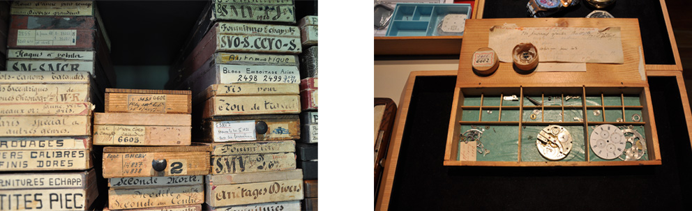 If you go up into the attic of the oldest building at Audemars Piguet you will come across the very items you would expect to find in a manufactory: treasures that have written history. The air is tinged with smell of the wooden cupboards and workbenches, and the solemn silence that fills the room makes you lower your voice as soon as you enter. The floorboards creak with every step and you invariably slow down in the face of the prevailing order, which you greet with utmost reverence. Stored in these rooms are the spare parts of the old models, some of which were made more than 100 years ago. And if necessary, these ancient treasures are repaired and restored here on the premises. Suddenly you find yourself imagining standing in a watchmaker’s workshop of the kind that existed in the early days of Audemars Piguet.