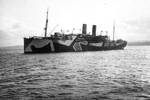 Military camouflage existed long before the advent of the stealth bomber - and it did so not only in the form of branches with leafs stuck to a helmet. Originally, the term "razzle-dazzle" quite generally referred to a kind of superficial flamboyance, a form of chaos and tumult. During World War One, visual razzle-dazzle effects were used on ships to deceive German U-boat captains. The Royal Navy, for example, commissioned artists to develop shimmering patterns based on cubism which, painted on a ship's hull, were supposed to make it more difficult for the captain of a hostile U-boat to accurately determine the ship's position, course and speed. After all, if said captain wanted to fire a torpedo at the moving ship, it was necessary for him to calculate where the ship would be when the missile reached it; he had to fire at a target calculated in advance. If the torpedo struck too early or late, it would miss the ship.