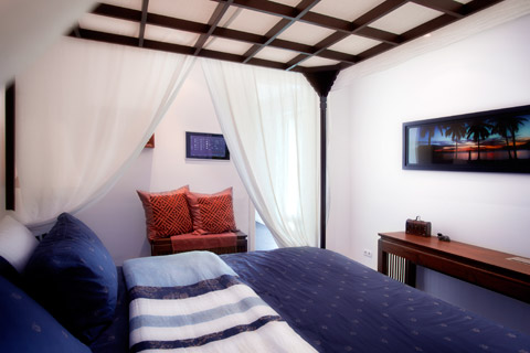 Asian flair and highly developed technology: The dormitory with Japanese canopy and “Gira Control 19 Client“ at the wall.