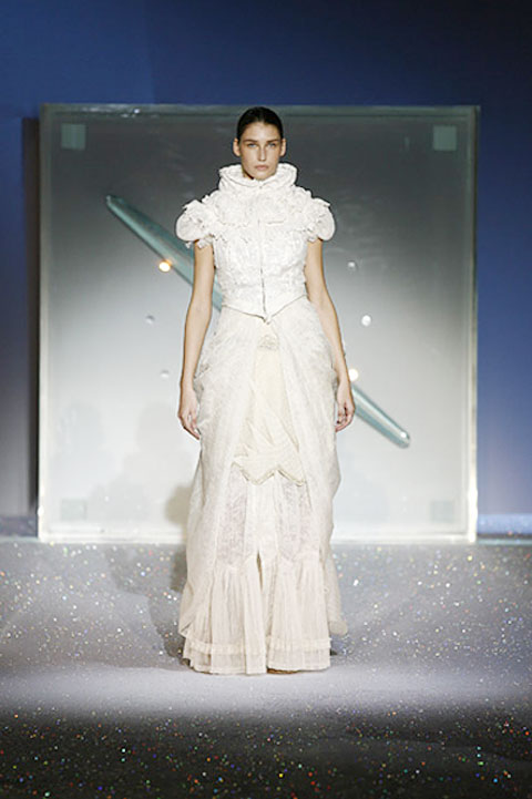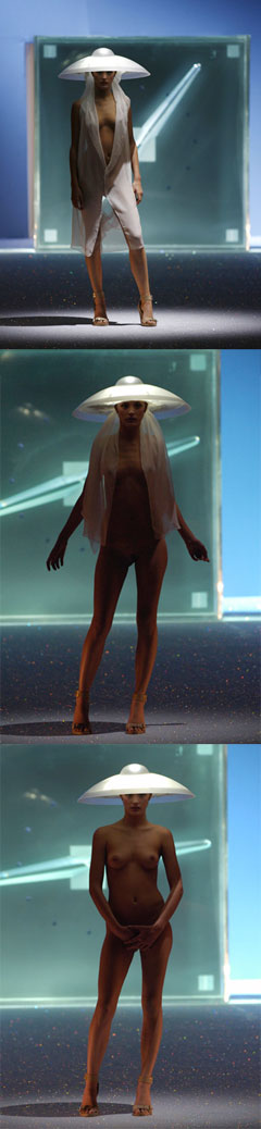Maison Martin Margiela, which has belonged to the Diesel Group since 2002, exhibited in Milan, with a simulation of the Paris studio, showcasing Margiela's strictly and consistently thematic universe, which can nevertheless be held up as a contrast to the life-style worlds of the big brands: a universe enclosed within itself, where files, calculators and computers disappear under white covers and ideas and concepts come to the fore. As at the Margiela exhibitions which were held in Antwerp and Munich to celebrate the fashion house's twentieth anniversary, the overall presentation provided impressive evidence of the strong influence exerted in recent times by conceptual fashion gurus on all areas of design. For, since the nineties, with designers such as Rei Kawakubo, Martin Margiela and Hussein Chalayan, fashion has come to enjoy the status of a conceptual, intellectually critical discipline and has thrown its own discipline and its exaggerated aestheticism more sharply into question than any established furniture designer has ever dared to.