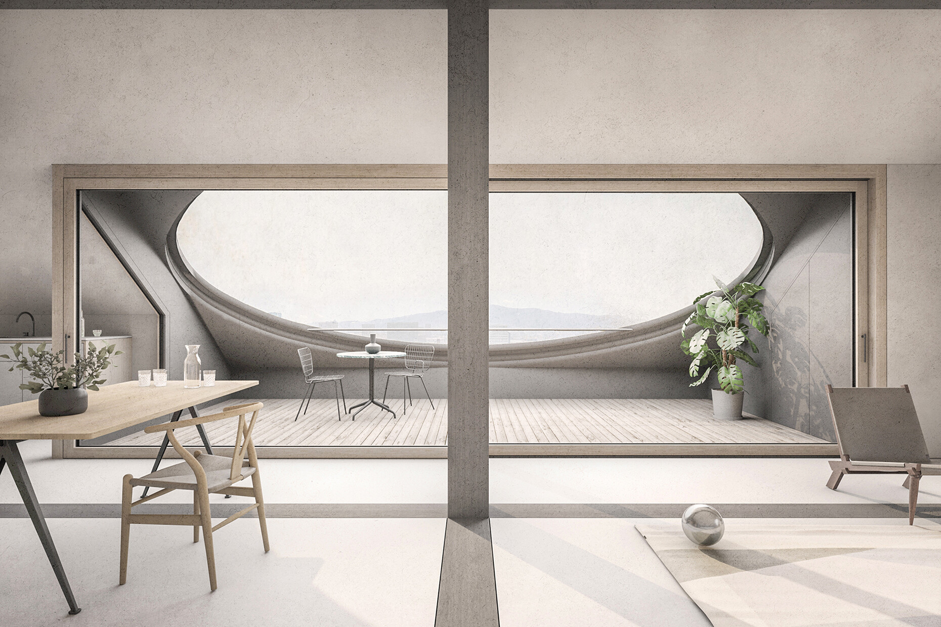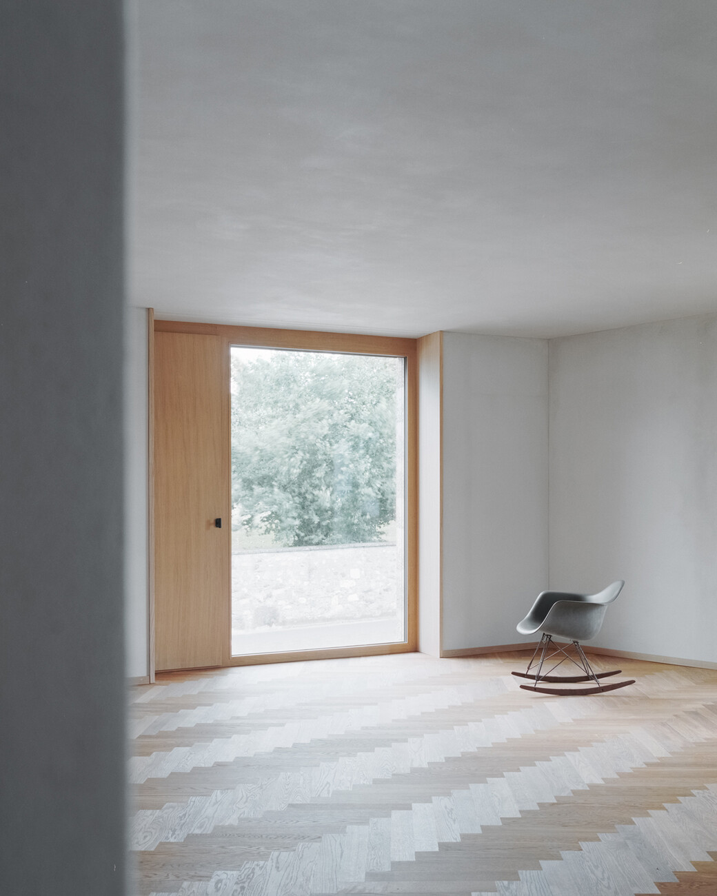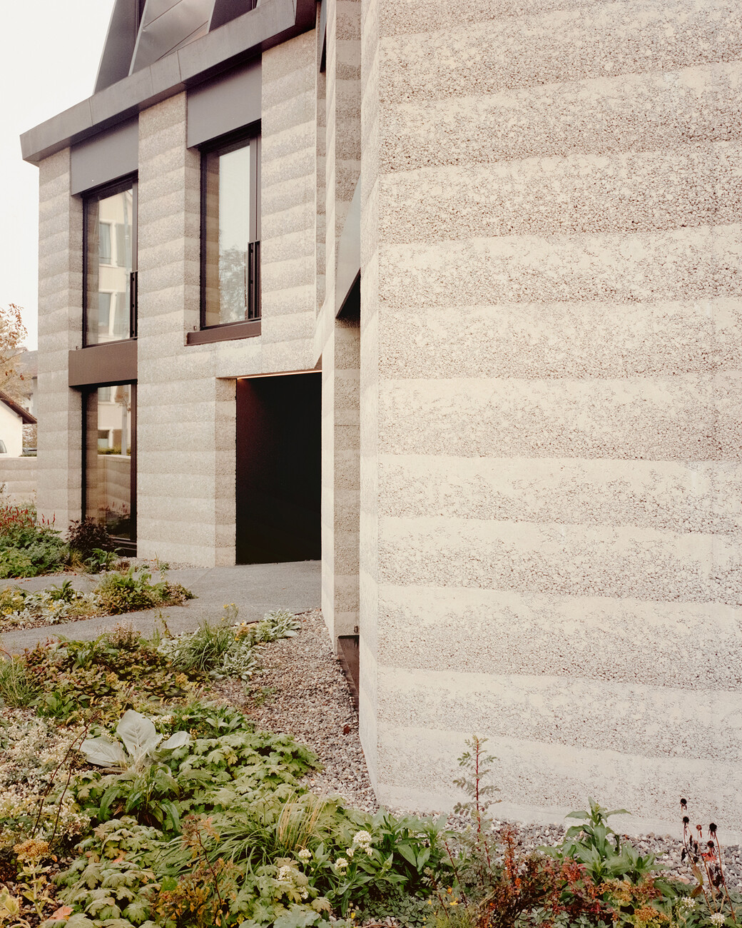 A totally different project by Think Architecture, which is already occupied, is to be found in the more rural location of Kilchberg. Rather fittingly given its location right next to the church on parish grounds, the practice’s winning competition entry is a cross-shaped building housing 12 apartments. On entering the building the first thing you notice is a skylight that produces an almost sacred effect in the stairwell. There are many advantages to this unusual layout. Thanks to the projecting and receding facade the apartments get light from all sides and offer exciting views of the surroundings. "The use of natural materials was also very important to us in this project," says Marco Zbinden. Think Architecture used breathing lime plaster for walls and ceilings as well as oak for fitted elements and floors. In an unusual move the architects chose pressed concrete for the facade, a material seldom deployed in multi-story buildings. “It creates a visual link to the natural stone walls of the cemetery and the walls enclosing the plot," explains Ralph Brogle. "Over time it will develop a patina and the colors will vary so that there is a visual connection to the church area." In other words, although the building retains a certain presence of its own it will nonetheless become integrated into the existing fabric. "This is a place where we would like to develop ideas, to recognize potential and continue writing history," concludes Marco Zbinden.