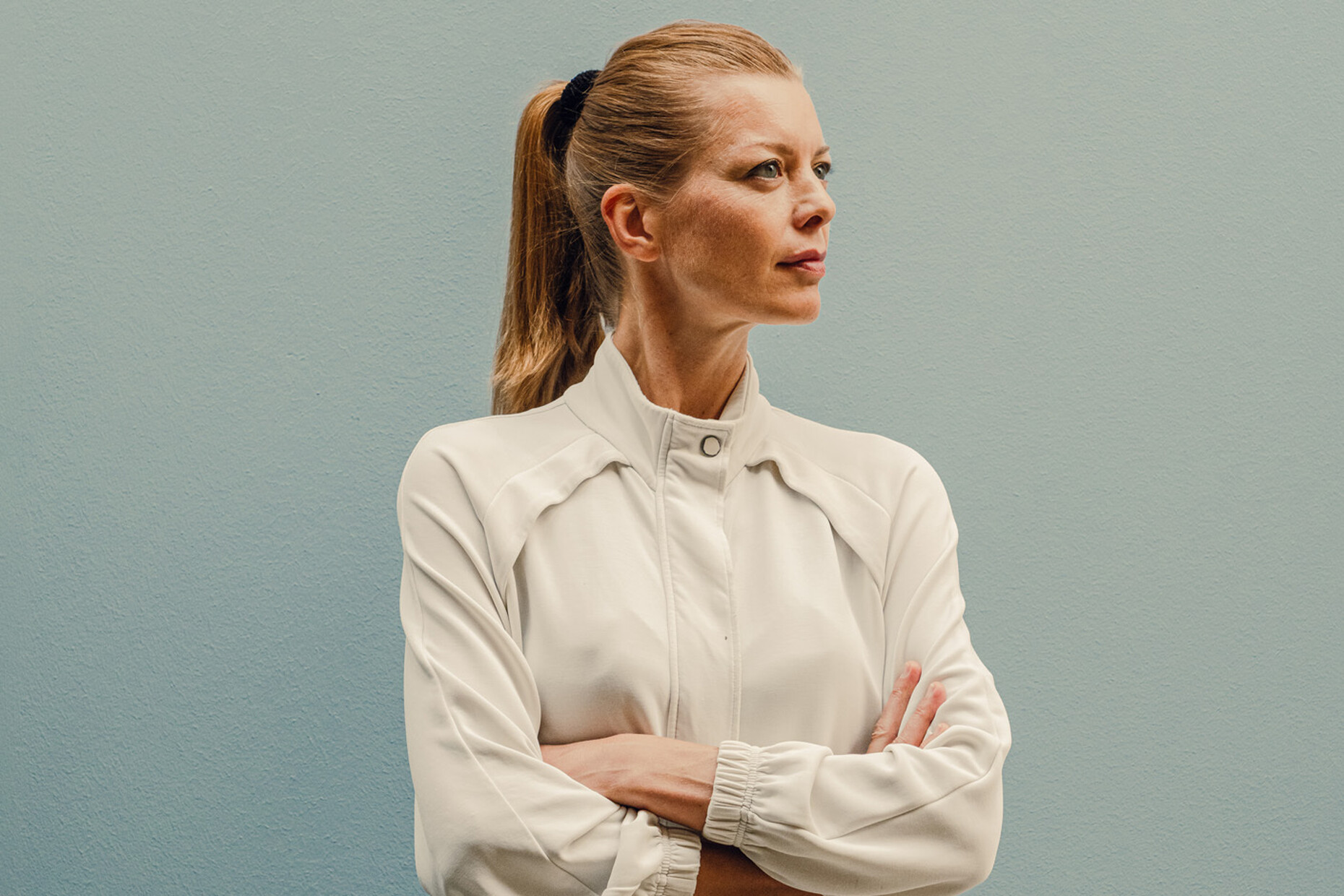 Jorinde Voigt: There is an interesting essay by French philosopher Gilles Deleuze about folds: information that is far apart on a straight line suddenly becomes adjacent when you fold it. This idea particularly occupied my mind during the lockdown of the coronavirus pandemic, as it was a time of waiting in which energy did not flow straight ahead as usual, but gathered instead. In this sense, the fold is a kind of storage medium that condenses a lot of information in one place at the same time. I translated this image into space and thus questioned its boundaries. What effect do the shapes have on interaction when the lines are not straight, but soft, open, and appear different from every point of view? This aspect is repeated in the mirror image that always moves with us. I also find the different materialities exciting. The goal was to design an immersive experience of body, space, and time.