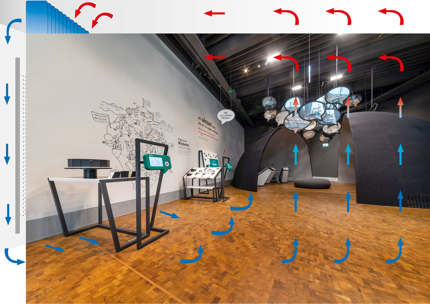 Anybody who sets out to explore a museum will need far more than just a few minutes to take a close look at all the interesting exhibits there – it takes time to enjoying inspecting everything without feeling that you’re being rushed. In the new building for the Science Center Experimenta in Heilbronn we are talking not only about just looking at what is on offer but also about interacting with it – with a multifaceted world to discover and find out about on offer throughout the exhibition area. For Sauerbruch Hutton Architekten, client Drees & Sommer and building owner Dieter Schwarz Foundation the whole project centered around the well-being of the visitors. Accordingly, TTC Timmler Technology’s silent gravity cooling system “Gravient” was part of the sustainable energy concept for Experimenta. In the exhibition rooms, a large number of different factors – from the media technology to the exhibitions and even the visitors themselves – all contribute to creating a need for cooling and ventilation. TTC Timmler Technology’s powerful cooling system copes with this task effortlessly. The gravity cooling system is energy-efficient, durable and quiet, making it a reliable contributor to a perfect atmosphere inside Experimenta. Using groundwater as a cooling agent in combination with a heat pump saves a good 200 metric tons of CO2 per annum. The temperature is distributed evenly, allowing for a pleasant and constant ambient temperature of 26°.