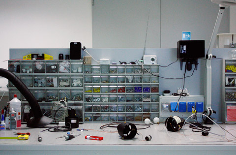 Testing and tinkering: In one’s own laboratory, every luminaire is tested for quality stability. Photo © Sara Bertsche, Stylepark