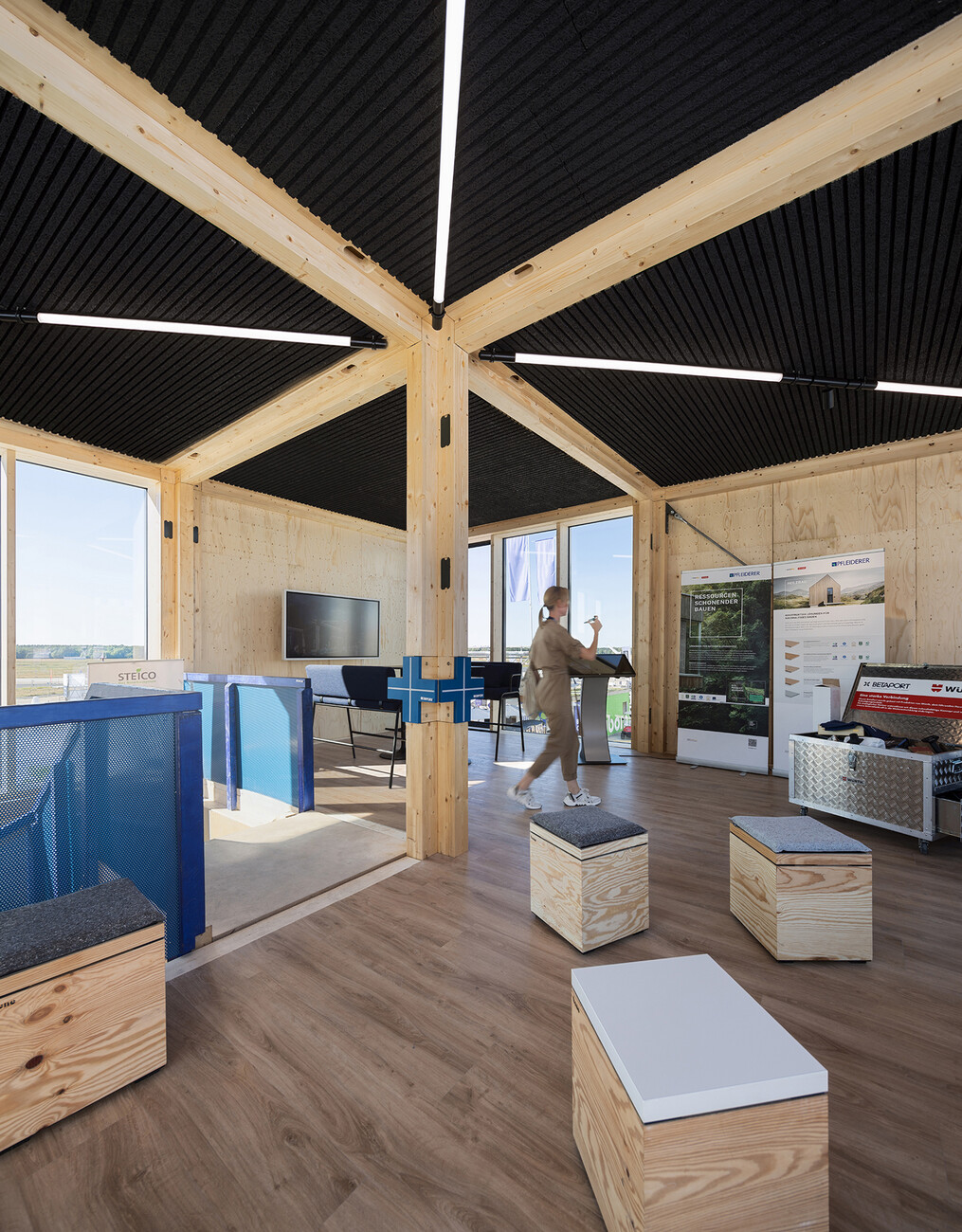 Marvin Bratke: We four founders –Anke Parson, Florian Michaelis, Paul Clemens Bart and I – are architects and entrepreneurs with different backgrounds in product development, design and research, as well as in producing buildings. In other words, our experience covers the entire spectrum of the construction process. We actually met long before Urban Beta was established, in the course of various projects in which we collaborated in different constellations. The four of us then finally came together through the idea of temporary, mobile solutions for using the brownfield in Berlin for homeless hostels, a project that later developed into BetaHood. There are now six of us and we are still growing. We collaborate with a tightly knit group of employees and our strong partner companies from the construction industry, firms such as Schütt Holzbau, Trilux, Schüco, JUNG and Wago. For us, 2023 will be a year with upscaling potential and will combine planning with the completion of our first commercial BetaPort building.