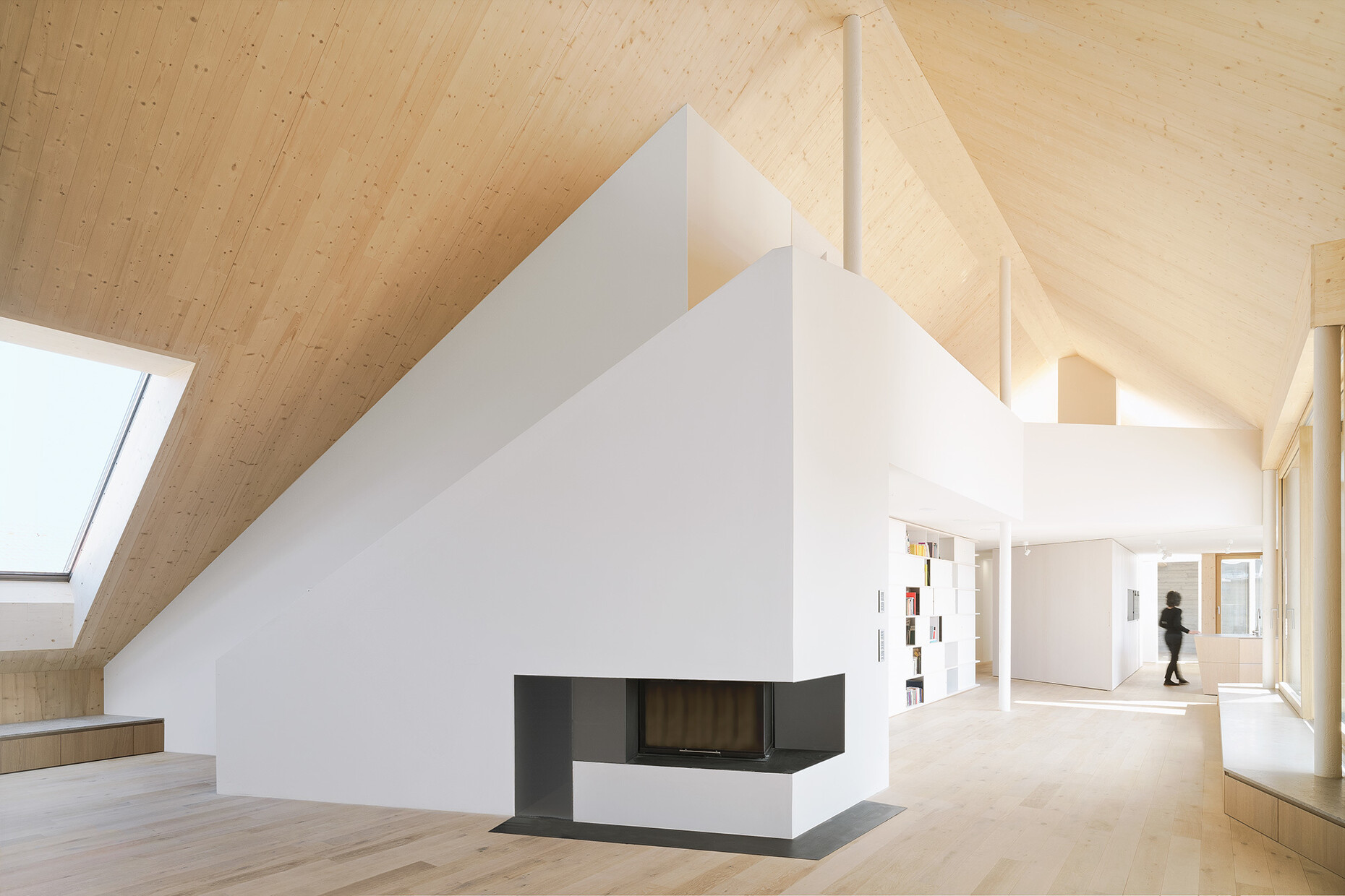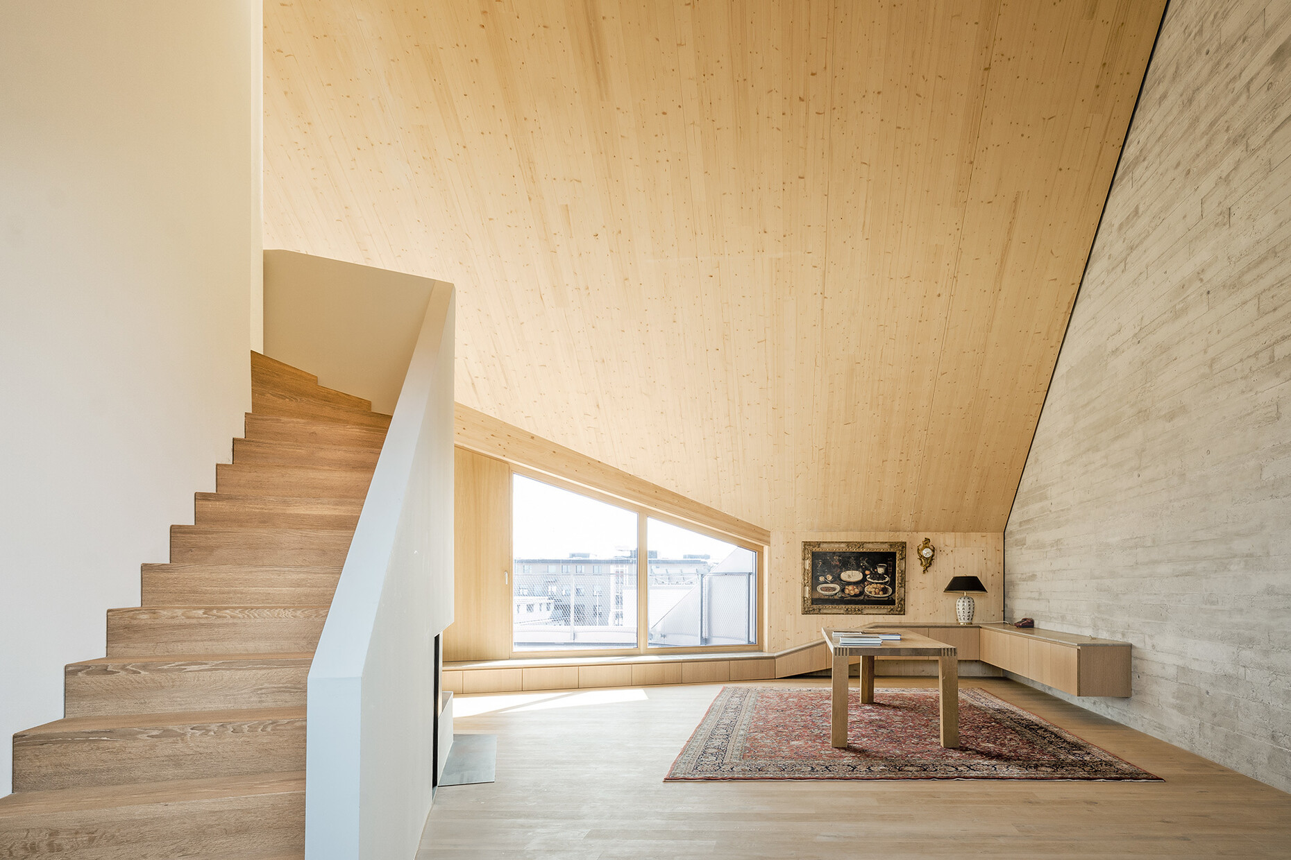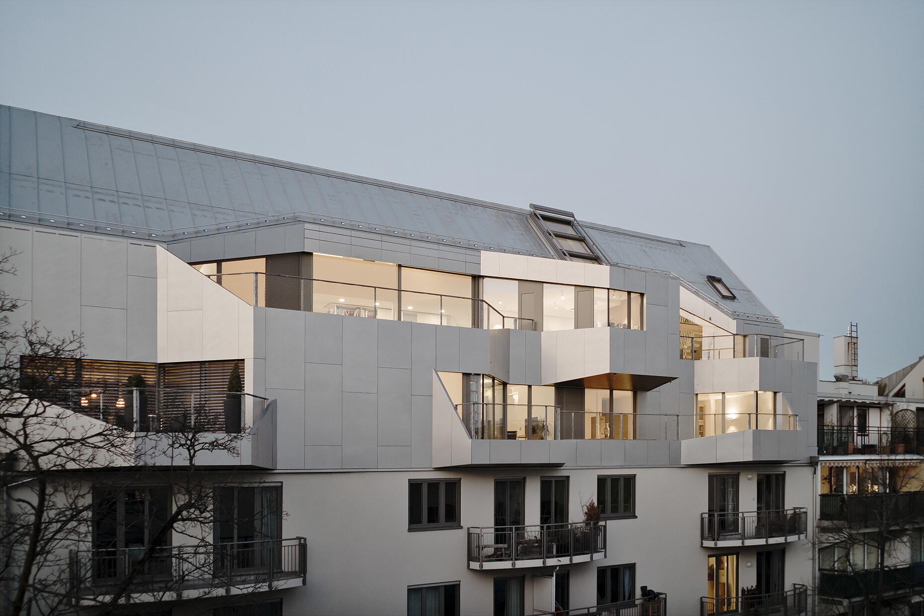 The jury of the Velux Architects' Competition praised the decision to save resources by retaining the existing building and the fact that the latter’s appearance had been considerably improved through the addition of the roof extension. Moreover, they underlined the sophisticated provision of light in the rooms, “which has daylight penetrate deep into the interior through the roof windows.”