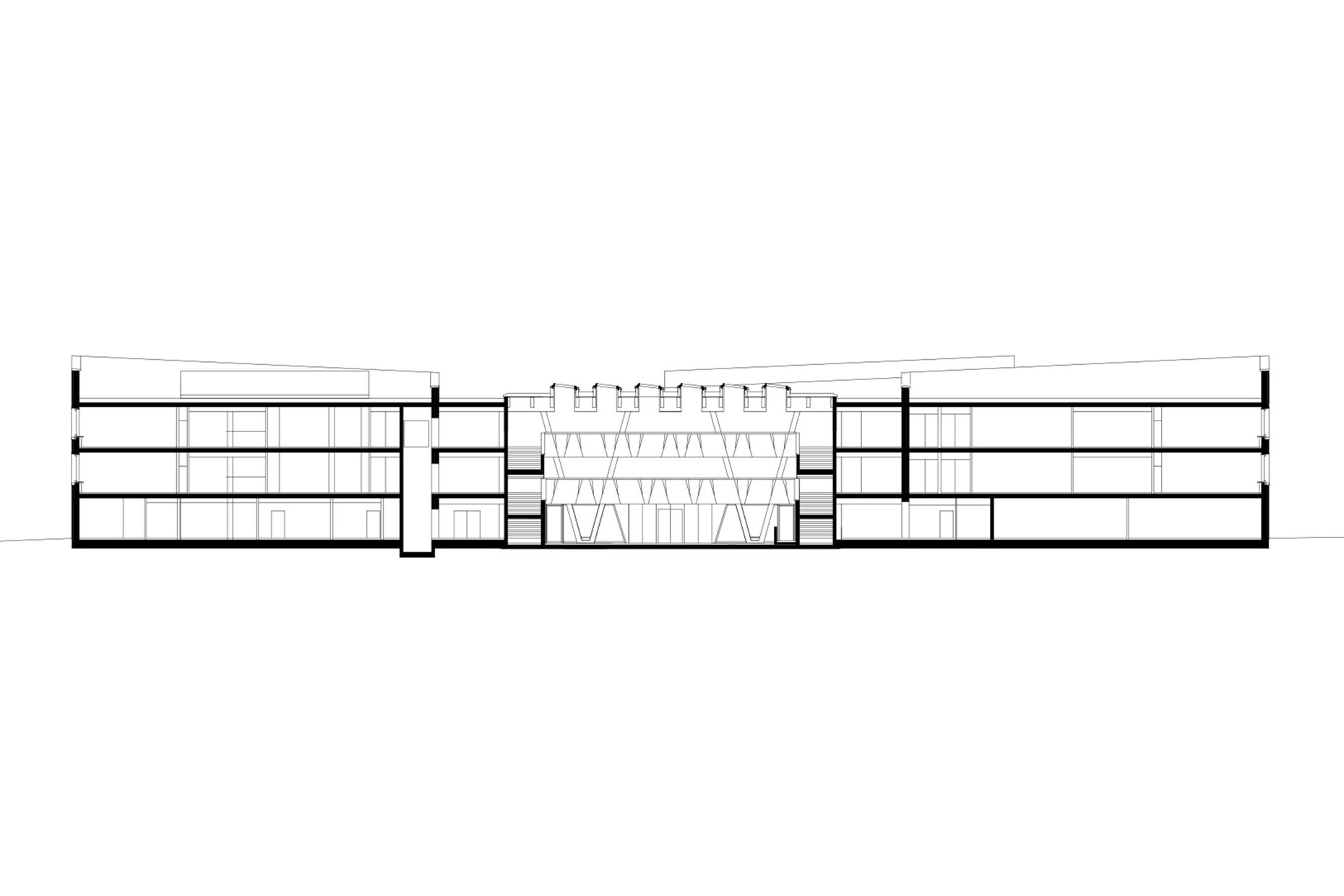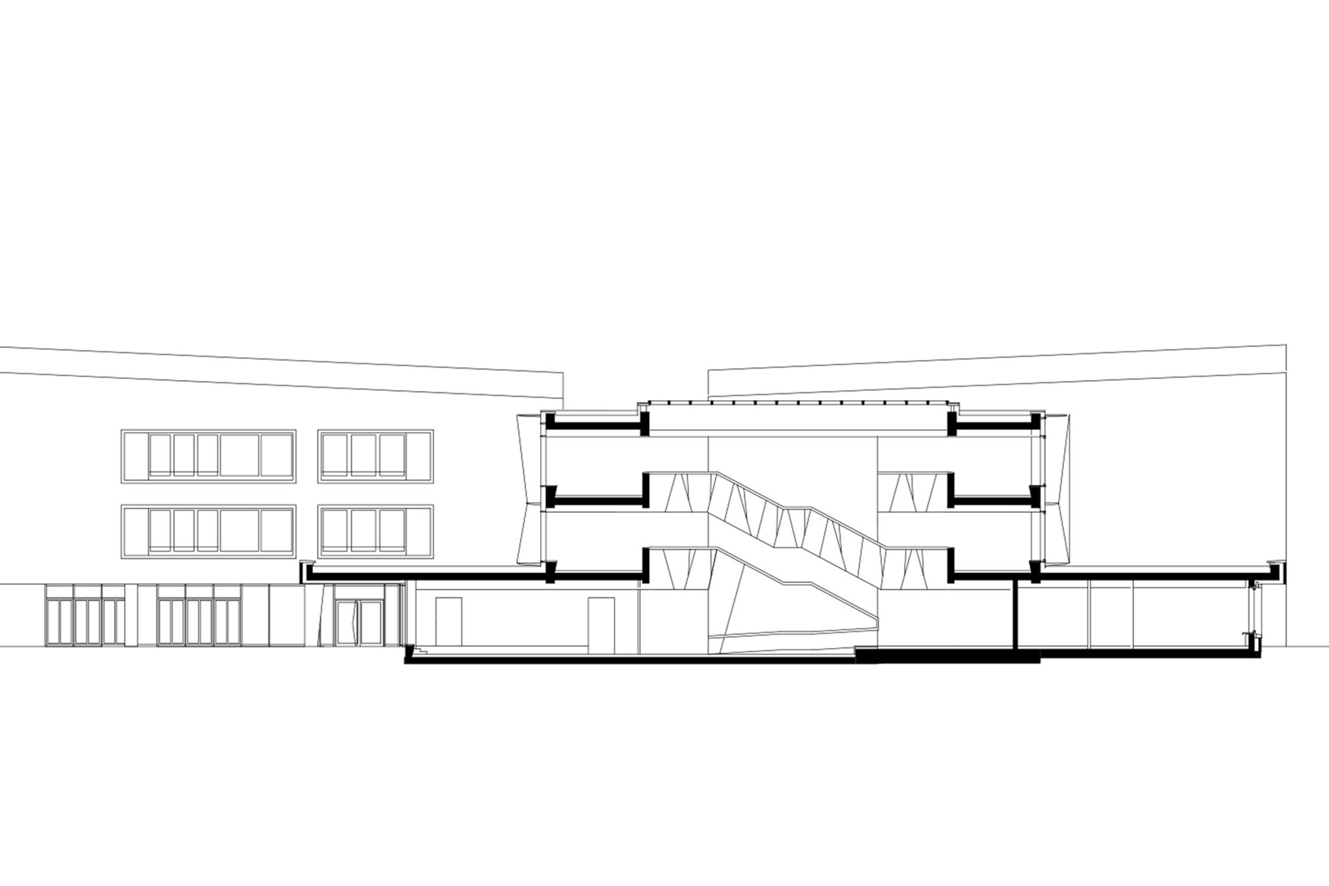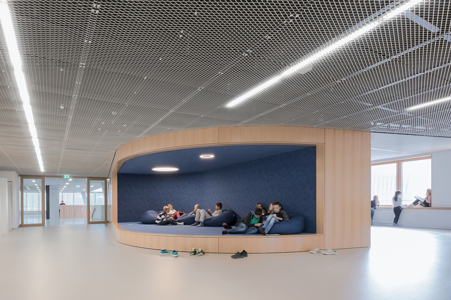 In their design wulf architekten were consistent in organizing the school around its central atrium. Three pavilions, each housing one grade, are grouped around this central element. With their two stories, each contains five classrooms and one “Differenzierungsraum” (differentiation room). The ground floor houses the specialist rooms, administration, canteen and school kitchen.