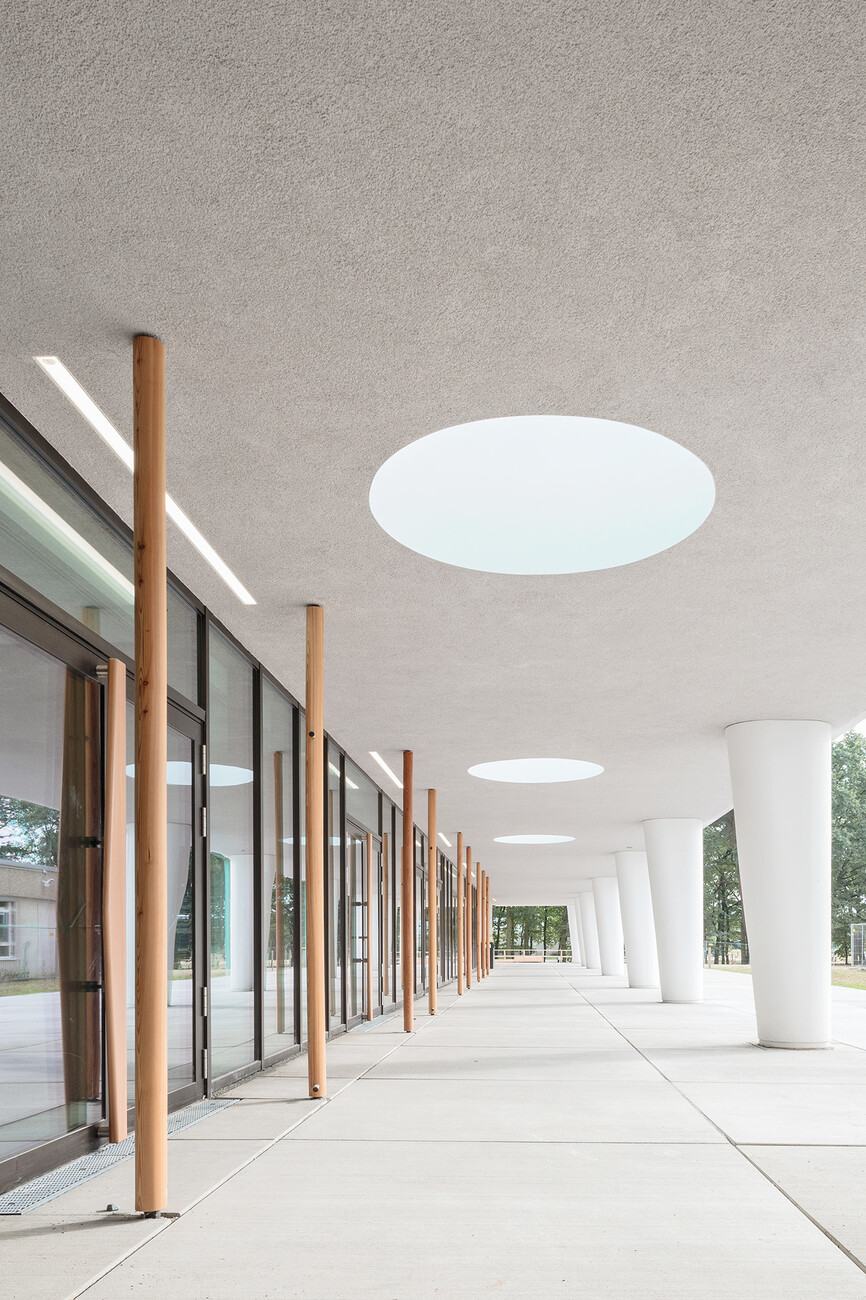 The panel of experts judging the 2019 Velux architecture competition awarded 3rd Prize to the Hessenwaldschule for its intelligent lighting concept. The jury particularly praised both “the recess hall which, because it has the benefit of such generous quantities of daylight, has the feel of an inner schoolyard out-of-doors”, and “special details such as the seating benches integrated into its v-shaped supports." (fap)