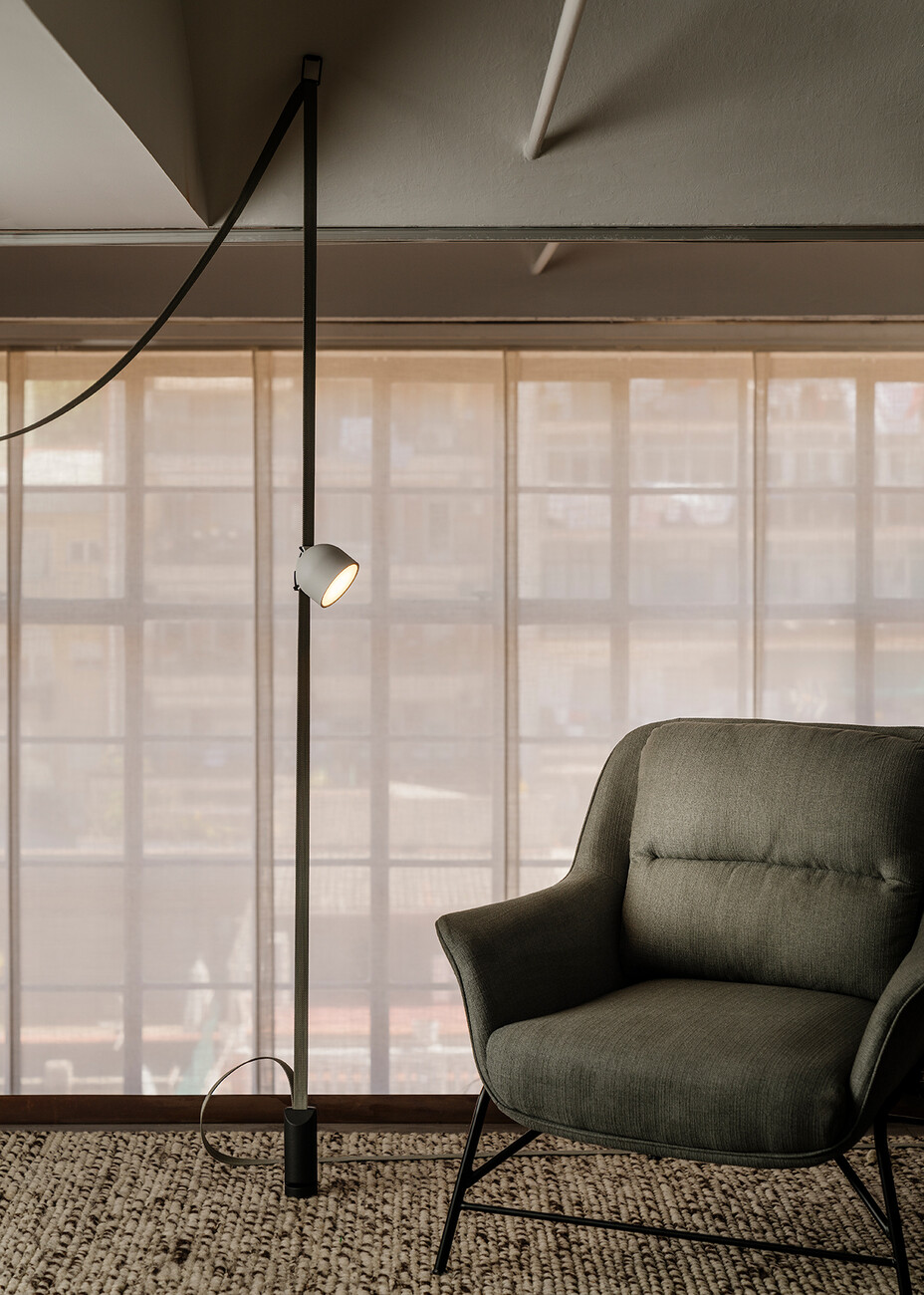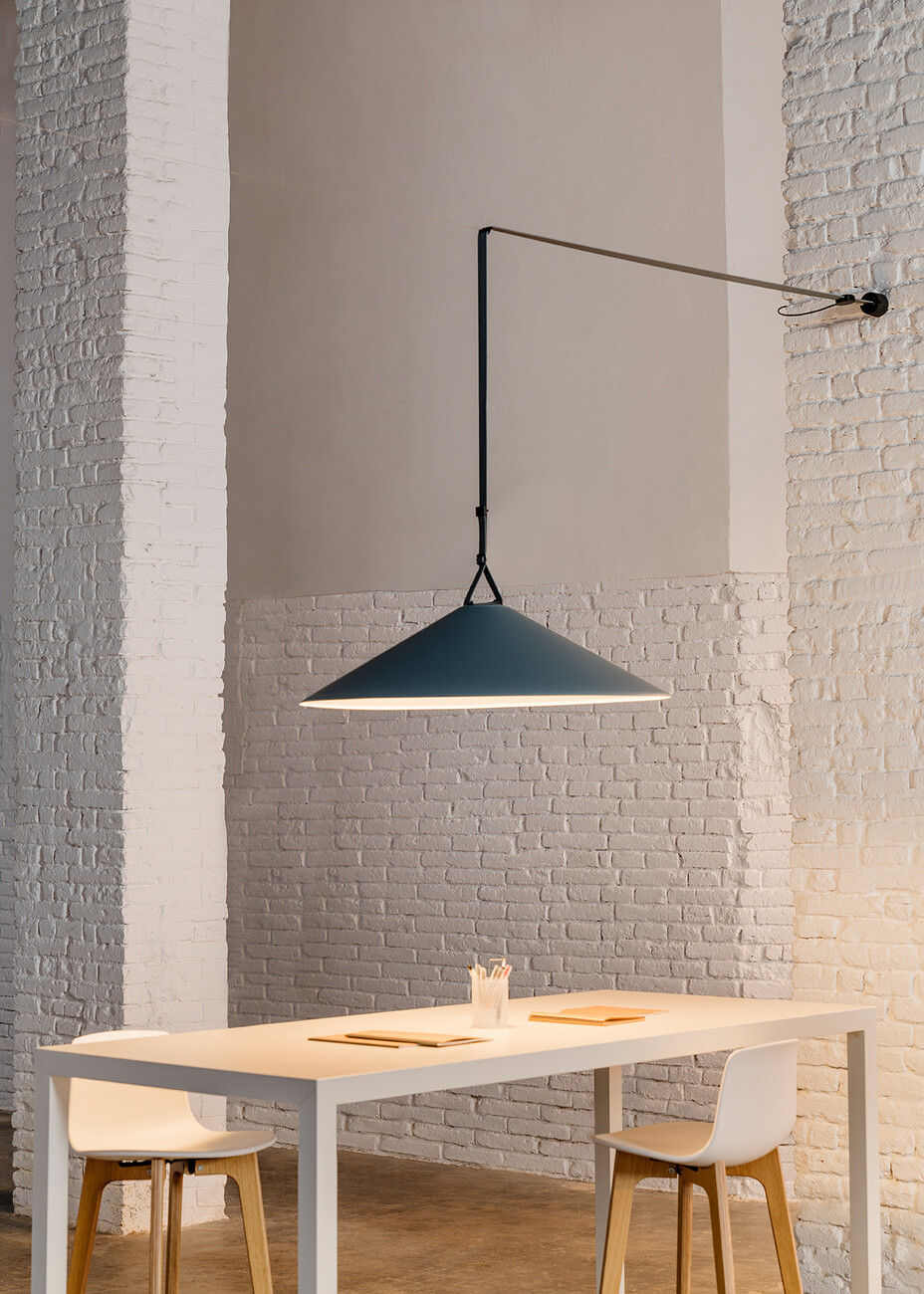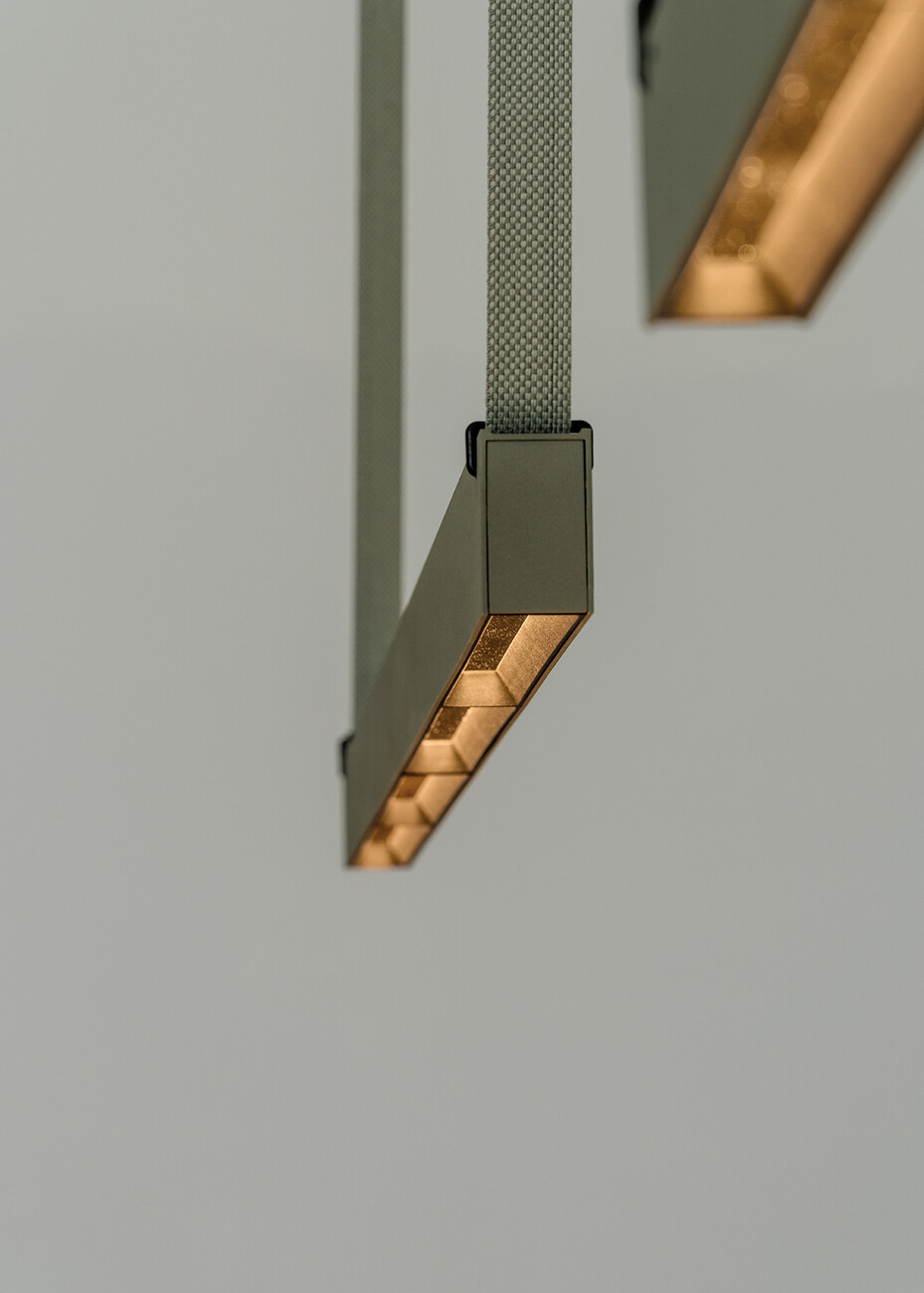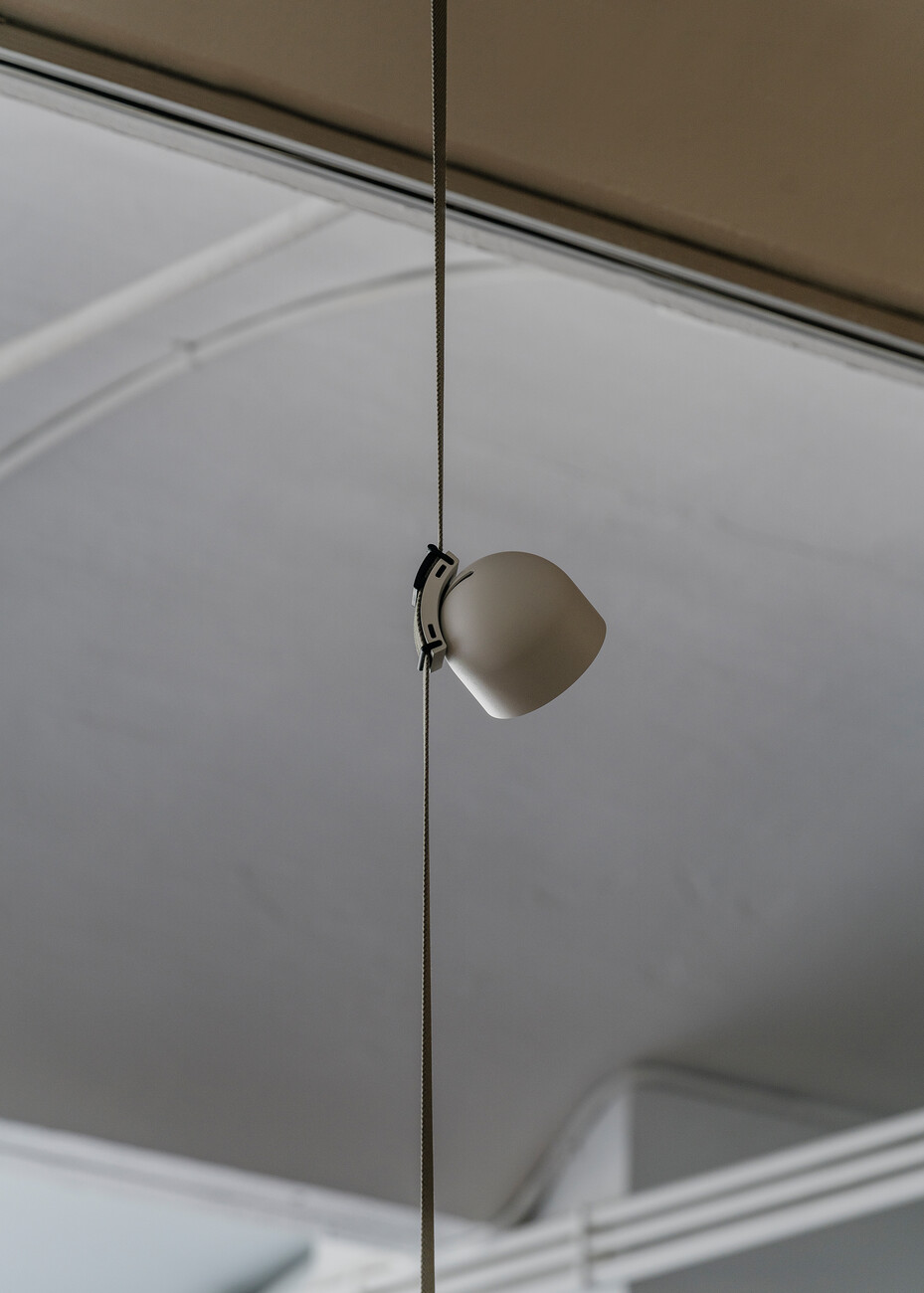A textile belt provides the basis for "Plusminus" by Stefan Diez for Vibia: six different luminaires are intuitively attached to it with a clip connection system - from a sphere, semisphere, cone, spotlight and linear diffuser to a linear low UGR. The textile strip is stretched from wall to wall, from floor to ceiling or across the room, as required. "Plusminus" thus offers a suitable solution for every lighting issue and architecture. The strap is also available in four colour versions as part of the Vibia colour palette. For the planning with "Plusminus" by Stefan Diez, a configurator will soon be offered on the Vibia website. (am)