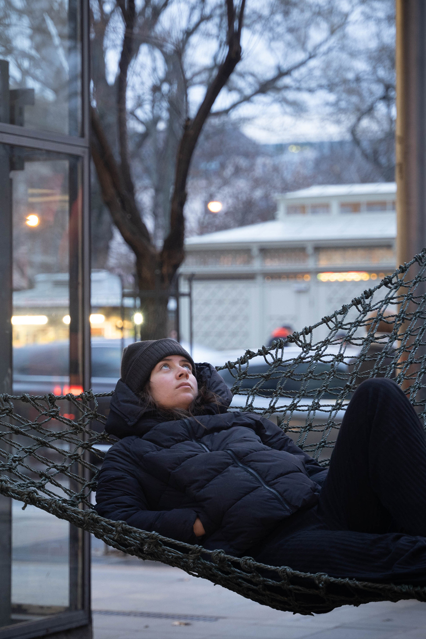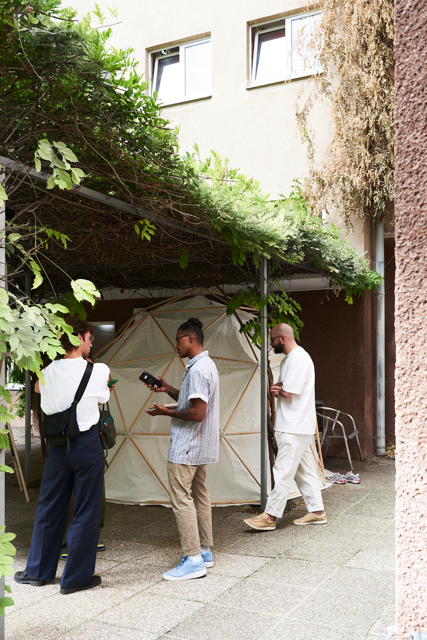 A project of the social design format Stadtarbeit, which invites people – festival visitors and random passers-by – to join in and help shape public space in the form of a creative action initiative, is the city networks membran, developed by the four-member team Julia Habarda, Julia Katharina Hahnl, Frida Teller and Tobi Kauer, all students of the Design Investigations class at the University of Applied Arts. Using self-built equipment made from leftover building site material, damaged building tarpaulins that have been cut into strips for the project are twisted into cords according to the rules of traditional rope-making craftsmanship to make nets that are intended as places to linger, dream and play. The Praterstern, a lively, multi-layered zone around a railway station, was chosen for the project. The urban work format itself, which celebrates its tenth anniversary this year under the motto "Increased beauty", aims to actively involve the population with all its social dynamics within the framework of creative methodology.