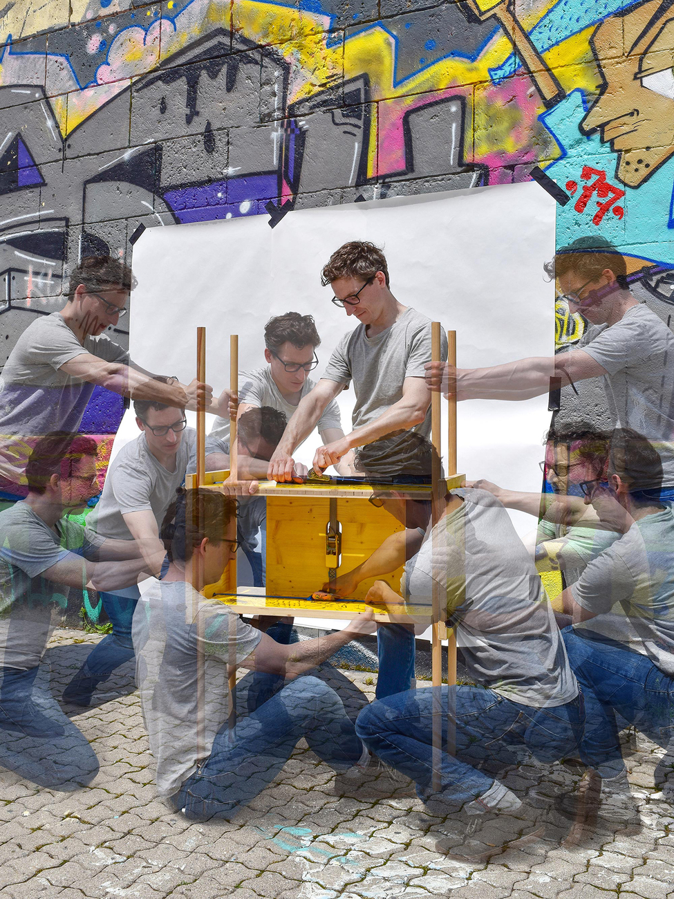 Sponsored by a renowned Austrian bank, a jury of experts will select three projects for implementation, which will also have a chance to win the Social Design Award. In addition to the London-born creative urbanist Eugen Quinn, who asks Austrians about their citizenship in his quiz "How to be Austrian – The Citizenship Pub Quiz" in various eateries around the Praterstern, JB Gambier and Hugo Beheregaray are also nominated with "The Destruction Room". The two designers, who live and work in the Netherlands, invite visitors to destroy white cardboard furniture in one minute with a tool of their choice and then repair it with colourful tape. As a result, the sterile white space becomes more and more colourful and the furniture more and more extraordinary. "We are looking forward to what will come out in the end and want to give everyone the opportunity to be part of the design. But we are primarily interested in creating awareness for a process that has always accompanied humanity: Destruction and the creation of something new. What do we conserve? What do we keep? What do we destroy? What do we repair?", says Hugo Beheregaray. "We have to create a balance – that is our message with this project."