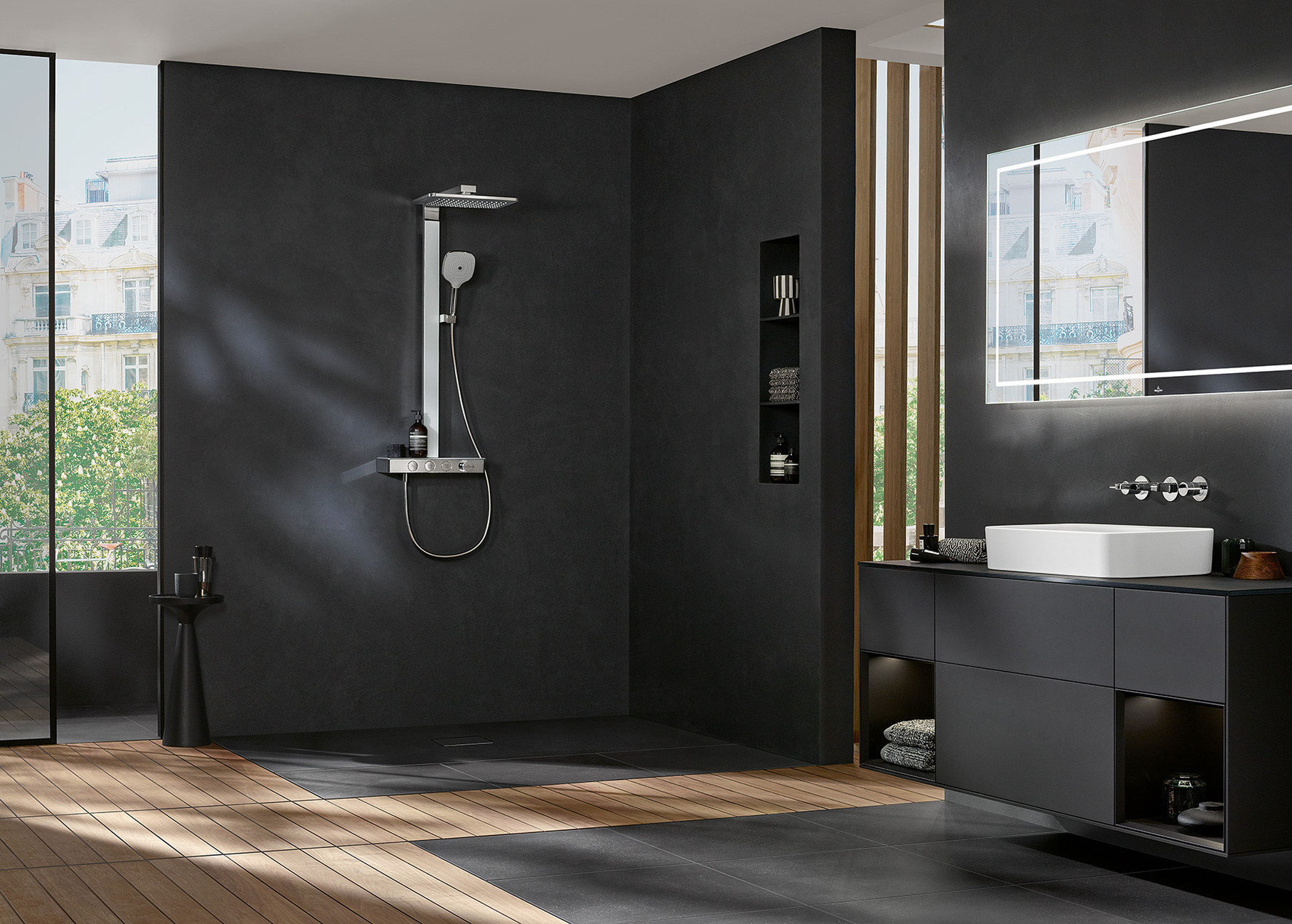 Whether hand shower, shower set, shower or bath thermostat: the ‘Infinity Showers’ collection from Villeroy & Boch offers particularly high-quality materials. The elegant shower heads and thermostats are available in glossy chrome or deep black matt and have a modern, angular shape. All seven items in the collection offer intuitive operation and cleaning. The functions of the hand shower include three spray modes, which can be switched from gentle to pulsating to powerful at the touch of a button. Those who prefer the overhead shower can also relax under the Relax shower spray as if in a waterfall.