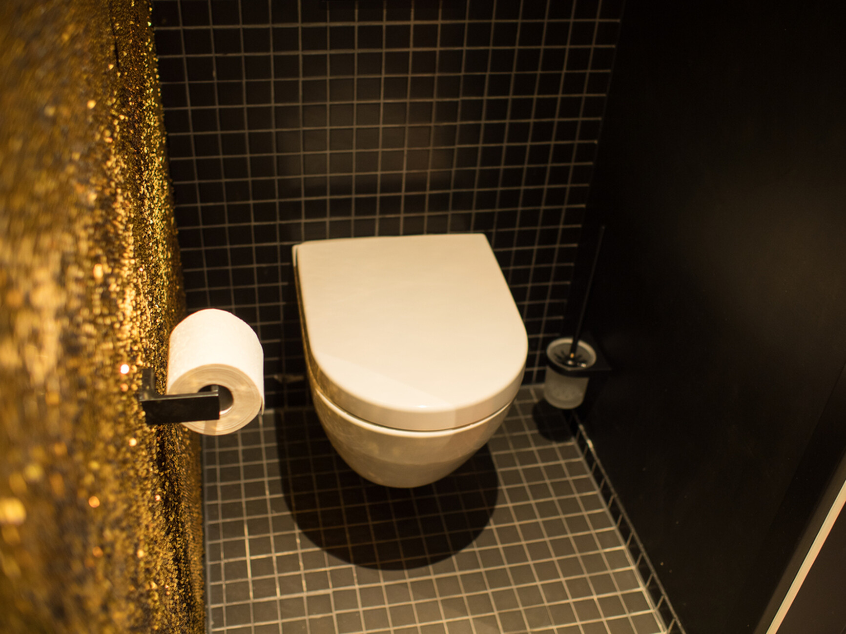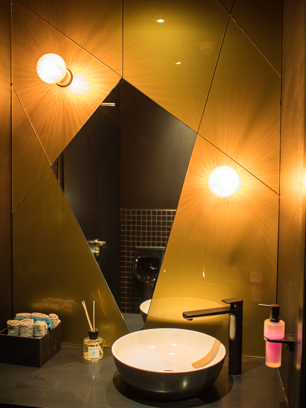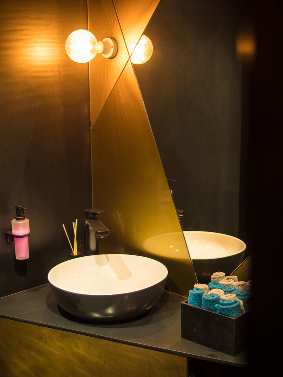 In the “33rpm” bar in Munich’s Haidhausen district life is leisurely, irrespective of the time of day: In the morning, the guests of the design hotel Jams next door flock in for breakfast; in the evening hip funk throbs round the rooms and the emphasis is on fine drinks. And at the “33rpm” music is not only in the air, as interior designer Michael Faltenberger opts for aural references, starting with the names of the cocktails via the coat hooks shaped like the middle turntable adapters for singles through to the complete mixing deck inserted into the reception top. The bar’s unique flair stems from a design influenced by upper-end clubbing and refined retro touches, with Faltenberger fostering harmony through contrasts: Dark colors, highlight in gleaming metal, soft velvet and hard steel combine to form a veritable theater set. And the idea does not end when you get to the washroom. There, golden sequins cover the walls, alternating with asymmetrical mirrored surfaces and anthracite ceramic mosaics. Added to which, the sanitary ceramics from Villeroy & Boch create stylish accents in terms of both shape and color: Gesa Hansen developed the color concept for the surface-mounted Artis washbasins that blend ideally into the “33rpm” concept with their silk-matt BiColour look and refined surrounding edge. Combined with the standalone washbasin “Cult” faucet sets in matt black, visually the ensemble is reminiscent of a record deck. The “Cult” bathroom accessories, such as the soap dispenser and the “ViConnect” series flush panels are color-matched accordingly. As the flushing flow restrictor in the ViConnect is easy to adjust, flushing is carried out economically and without many splashes.