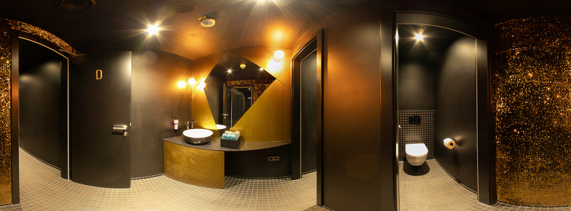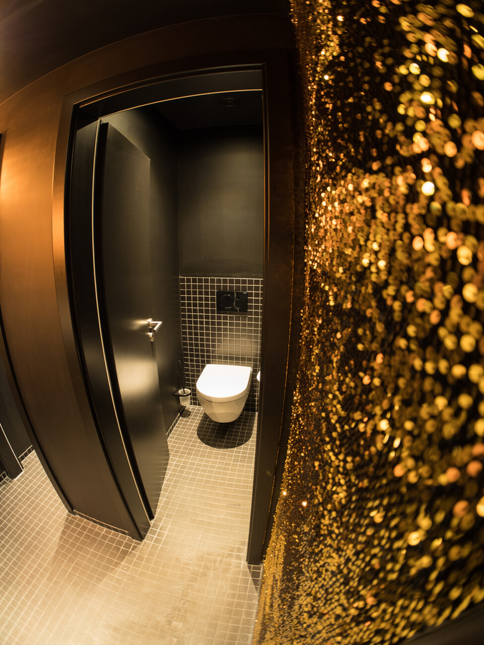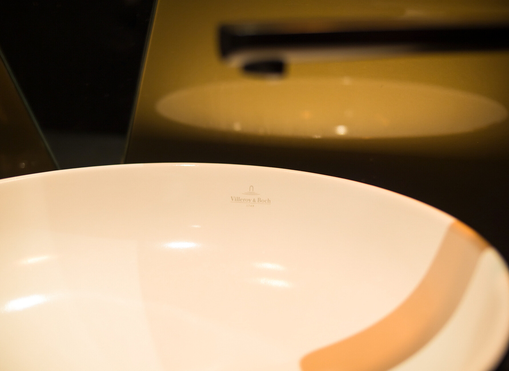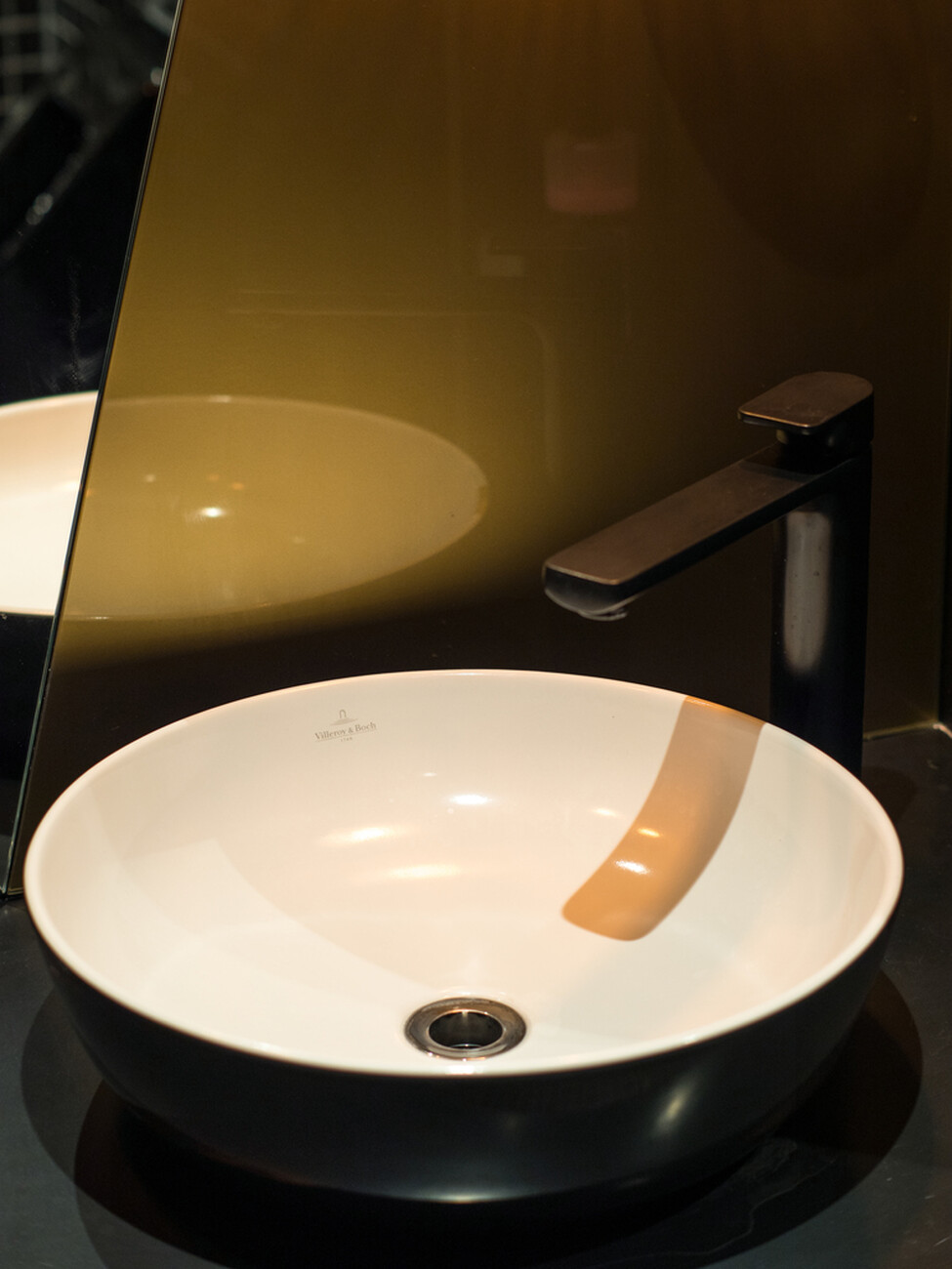The choice for the WCs and urinals was the flexible products from the “Subway” and “O.novo Vita” series: Thanks to Villeroy&Boch Bad & Wellness’ DirectFlush technology, using only a minimum quantity of water, the entire “Subway 2.0” toilet basin can be flushed. The design dispenses with a flushing rim and therefore also makes for very simple cleaning and maintenance. “O.novo Vita” is a welcome addition for guests who require barrier-free solutions – once again it boasts “DirectFlush” technology and a mass of ingenious details, such as the grip groove on the lid which makes it easier to open and close. The siphonic “Subway” urinals certainly make a clear statement for all their plain aesthetics: Since all the attachments are concealed, the smooth surface in matt anthracite has an especially smooth appearance. Added to which with its dirt-repellent CeramicPlus finish the sanitary ceramics are especially hygienic, easy to clean, and very robust. With its strong feel for the special Villeroy&Boch has contributed decisively to ensuring a visit to the 33rmp bar is a pleasant experience for guests at all times.