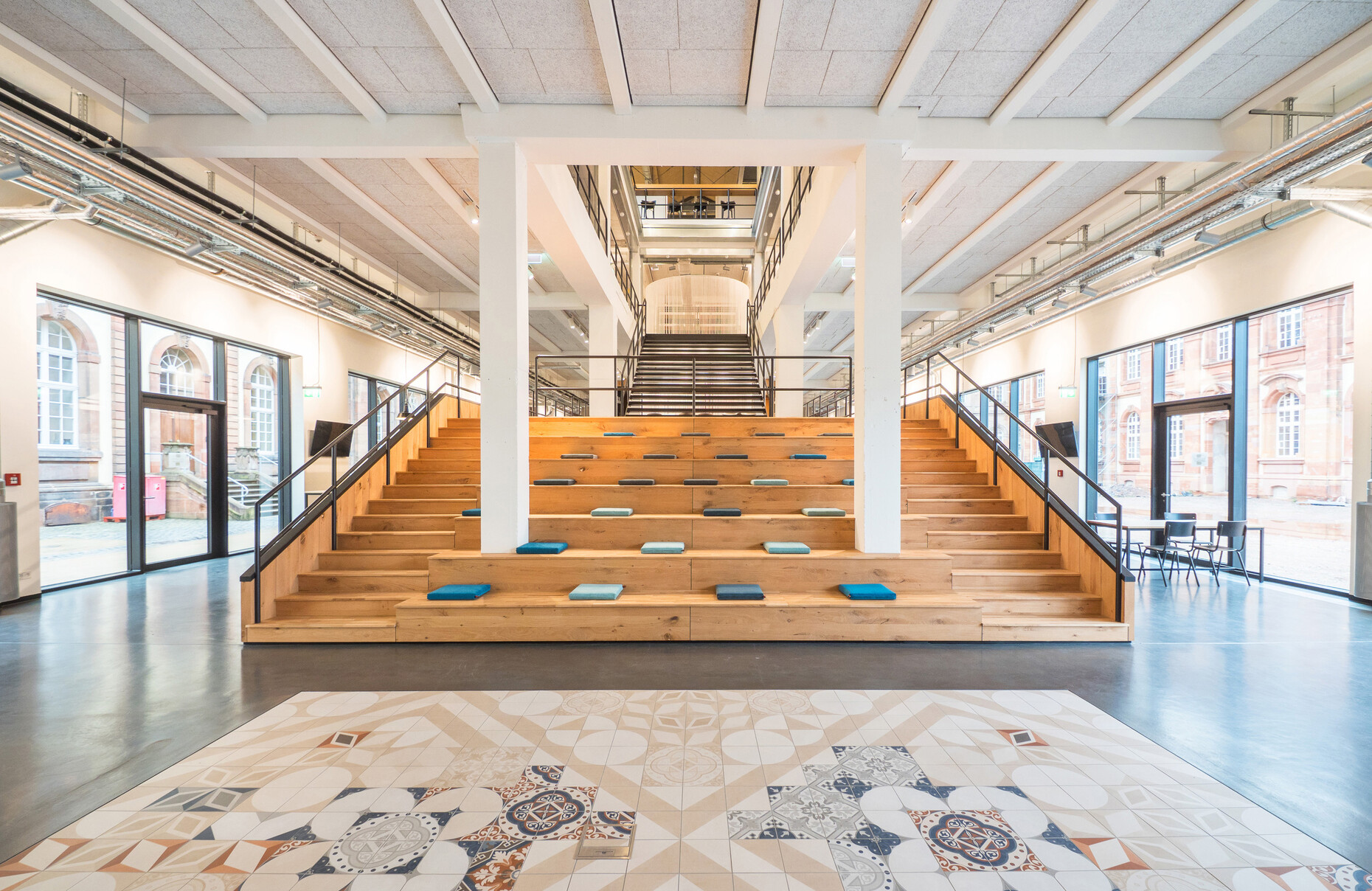What do the bathrooms of a sanitary specialist look like? Highly varied is the answer for Villeroy & Boch in Mettlach. For 260 years, the municipality on the river Saar has been the headquarters of the manufacturer of ceramic products specializing in bathroom and wellness, tableware and tiles. Many years ago, Villeroy & Boch built its factories on the site of a former Benedictine monastery. Bochem.Schmidt Architekten have now converted one of the historic brick buildings covering 4,000 square meters to accommodate a modern office concept that recently received the ZIA Office Award: Now the employees from twelve different sections have temporary workplaces but also zones for work requiring greater concentration or communication within a group. All the workplaces are ergonomically designed; for example, the desk height can be adjusted as needed.