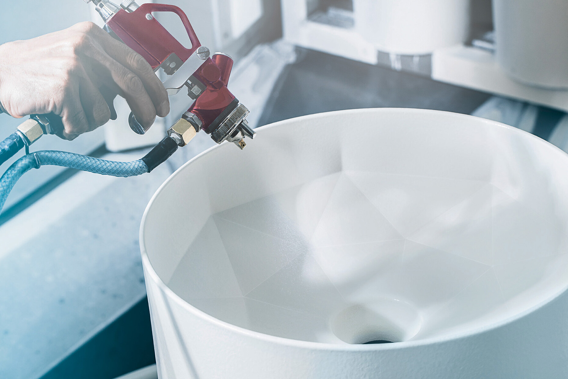 Especially thin, refined edges and beautiful shapes are currently all the rage for washbasins, above all surface-mounted washbasins. This trend cries out for a ceramic material that can be utilized with thinner walls, combining the properties of high-grade sanitary ceramics with extraordinary stability. In fact, the cherished shapes are only possible if such materials are deployed. At Villeroy & Boch, engineers in the ceramic development section spent 2 ½ years tinkering, researching and testing things until, back in 2015, they proudly presented “TitanCeram”, the material of tomorrow. In order to make it, natural raw materials such as feldspar, quartz, clay and titanium dioxide are processed to form a homogeneous ceramic mass. And to guarantee that the basic material possesses the best possible properties, the components are milled, mixed and filtered on the Villeroy & Boch premises. The innovative "TitanCeram" material enables objects to be made with truly refined shapes, extremely thin walls and perfectly molded edges.
