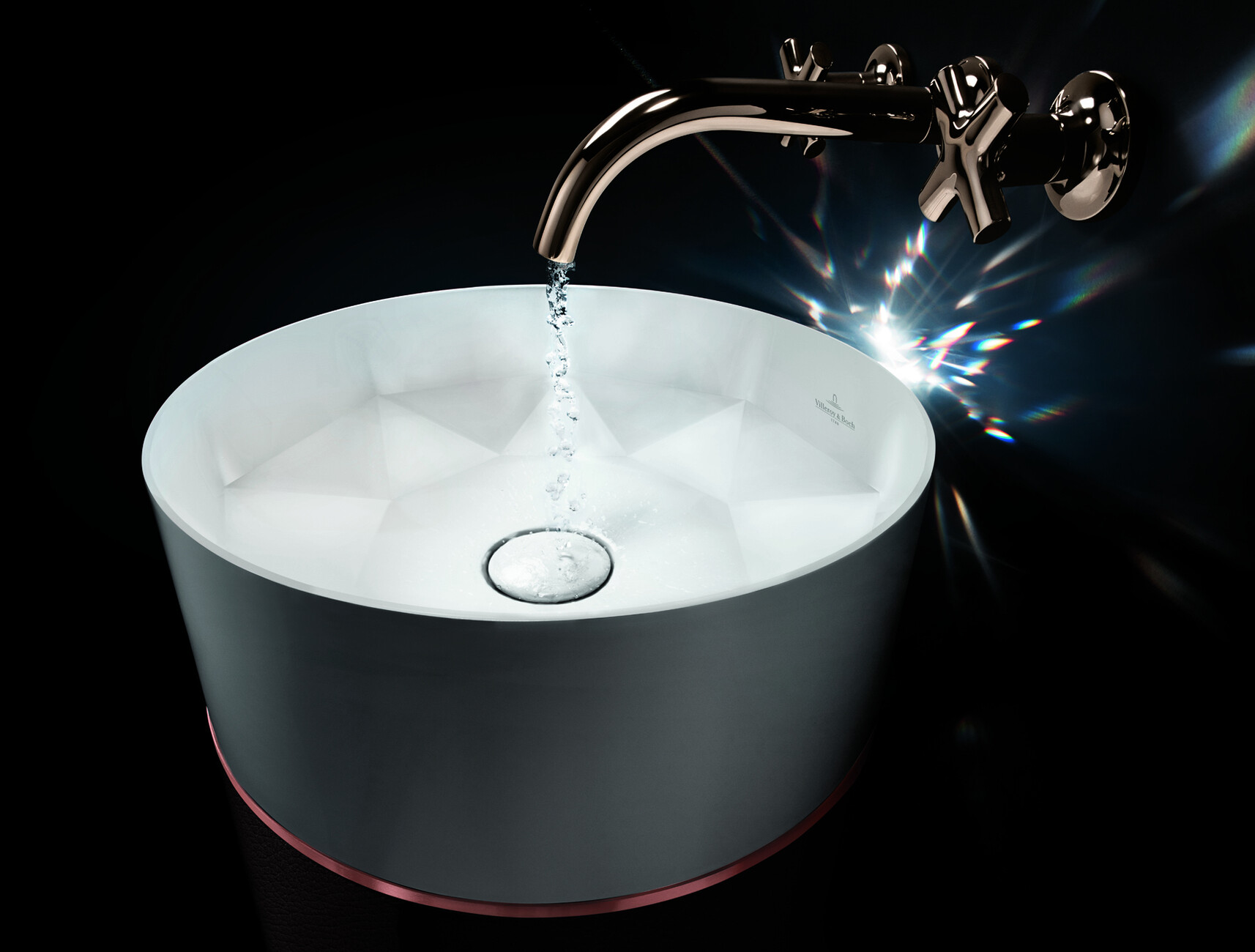 Designers really appreciate "TitanCeram"’s special material properties, as it lays the foundations for them not only to be able to design graceful silhouettes and highly-complex geometries, but also actually make them. For example, Kai Steffan relies on the novel material (which produces just a low shrinkage during the firing process and thus ensures prime dimensional tolerance of the products) for his “Octagon” pedestal washstand, which boasts a fitting rim only 5 millimeter thick. Moreover, there are facets inside the basin reminiscent of a polished diamond: Here Steffan transposes the shape of an octagon into the ceramics in a striking way and thus gives rise to a completely new type of washstand design. The geometrical figure of the "Octagon" creates a surprising effect inside the basin that you hardly expect to encounter on first sight.