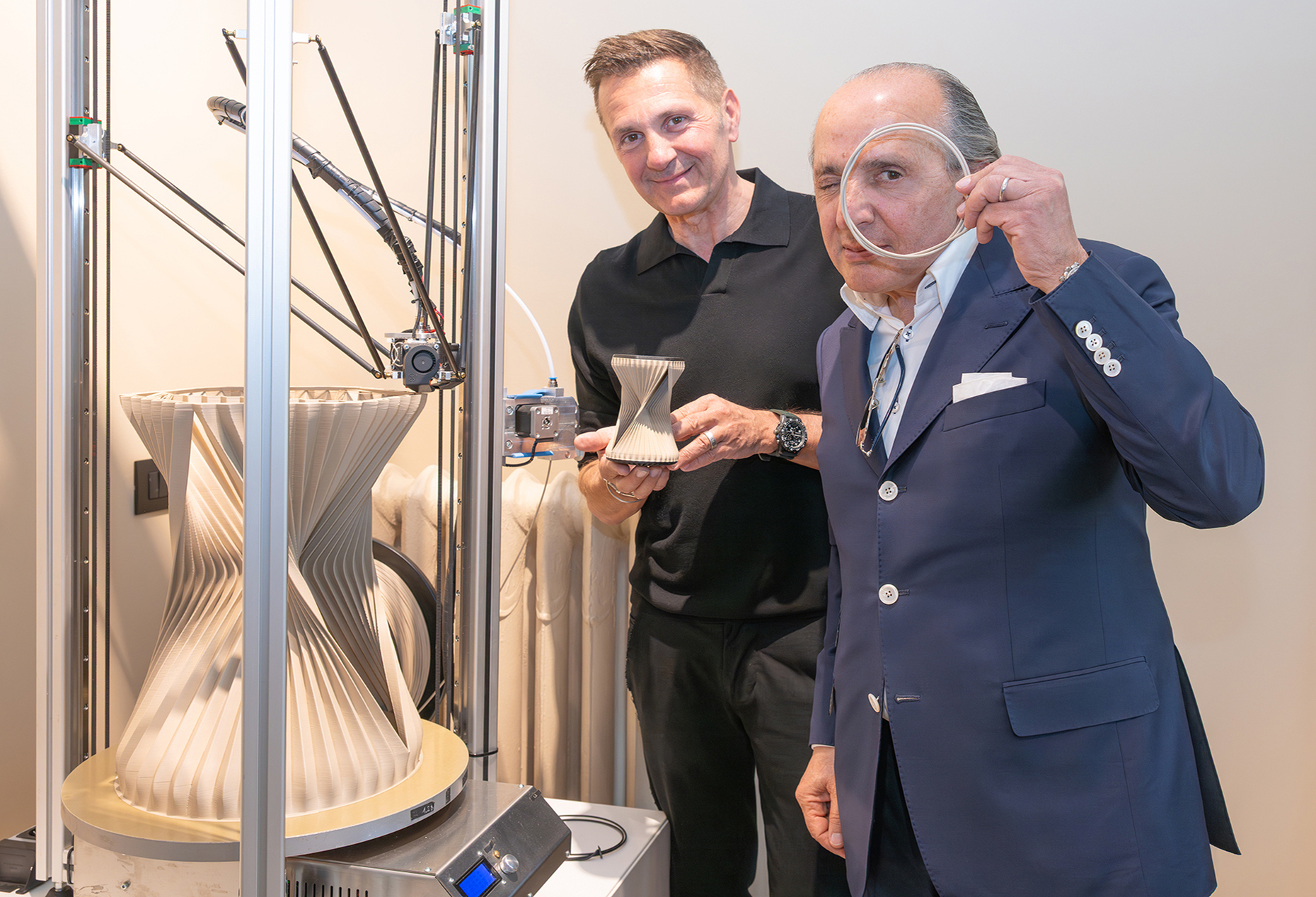 The backdrop for this is unique: the custom-made room concept “d2 bespoke interior system,” designed by the renowned studios Gonzalez Haase AAS and Stefan Diez, can be experienced in an iconic 1962 Airstream Bambi or on the company's premises at Design Post. Wagner's mini showroom, which will once again be located at the entrance to the Post, has been converted into a cozy hotel room in collaboration with the fabric label Fischbacher 1819. It features the prototypes “W-Kiss” and “W-Tire” as well as the “Nesting Sofa mini” by Steven Dahlinger. These are shown in the right light thanks to collaborations with the smart lighting technology from Heavn – Human Centric Lighting and some iconic table lamps from Vibia.