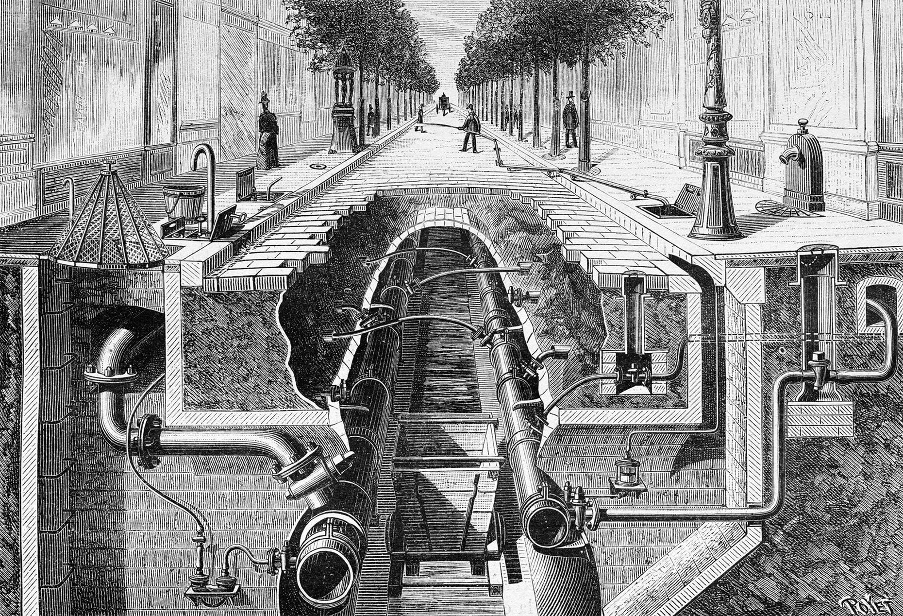Dr. E. P. Léon-Petit also collaborated with architect Gustave Rives to design a “chambre hygienique,” a prototype hotel room intended to prevent the transmission of tuberculosis among guests. Starting with the Exposition Universelle in Paris in 1900, the installation was on display at many trade fairs and conferences, contributing to the design of numerous hotels based on this model. We also learn that feminist writer and home economics pioneer Helen Campbell stated in House Beautiful magazine in 1899 that microbes were the most active promoters of progressive interior design: “Without them, the best forms of interior design would still be only a dream of progressive architects,” she said.