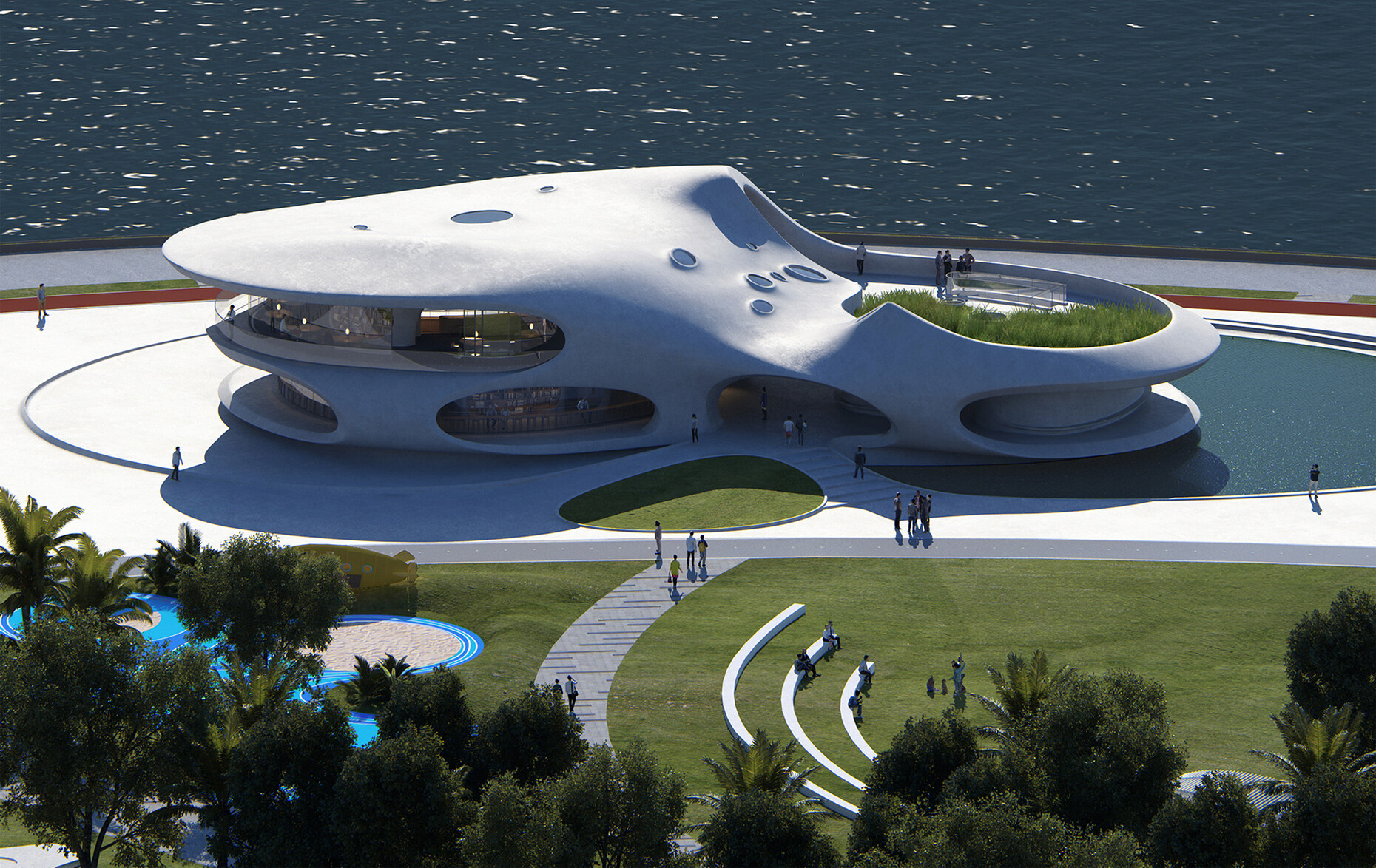 Weng Ling: Unlike traditional public art, Pavilions by the Seaside intends to integrate art, communication, education, and public utilities, inviting people to immerse themselves into nature, ultimately creating an emotional link between human, nature, and the built environment. These 16 pavilions will form a coastline of mobile cultural centres. The core of this project is its connection to the people. I hope that it will eventually be integrated into the daily life of Haikou residents, providing new cultural experiences to the residents of and tourists who come here to visit, or simply to explore as they leisurely walk by the seaside, adding to enrich their daily lives.