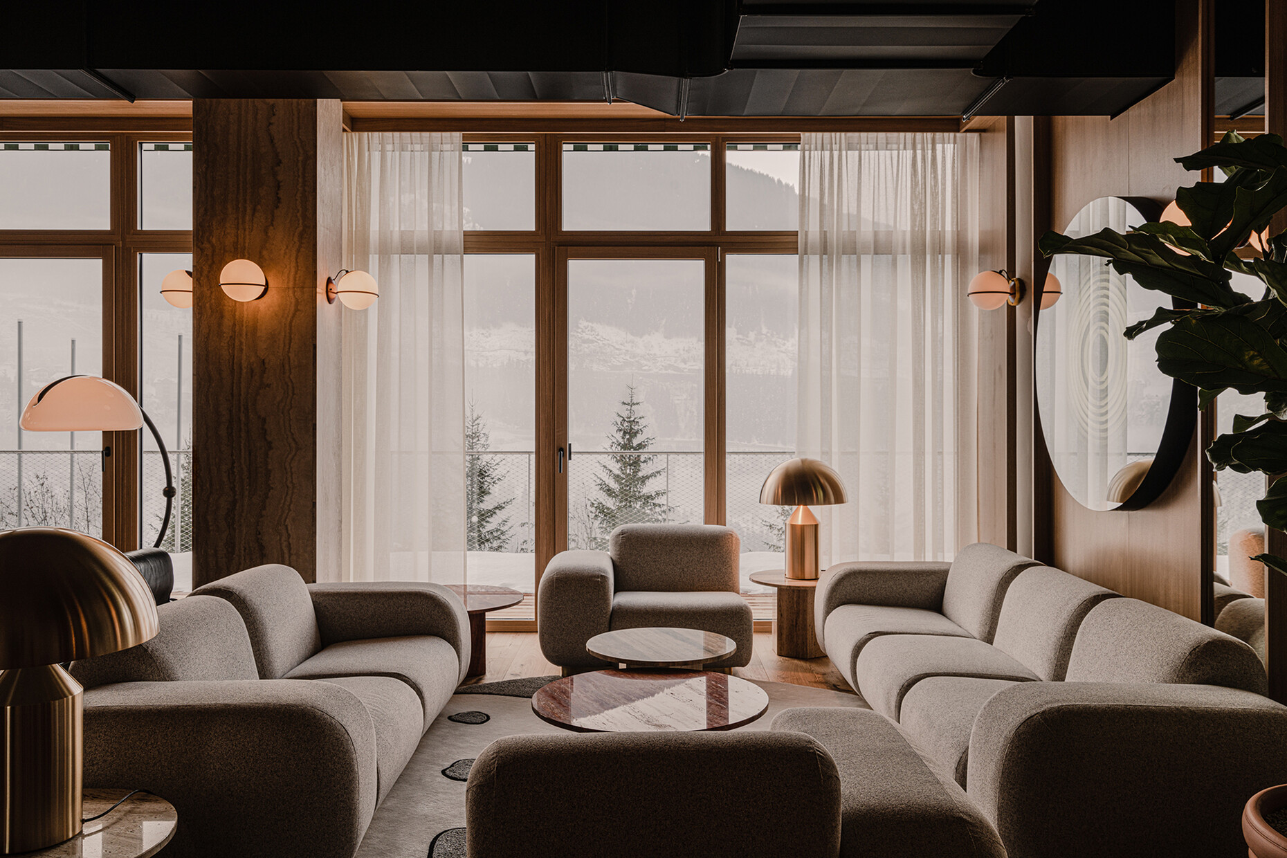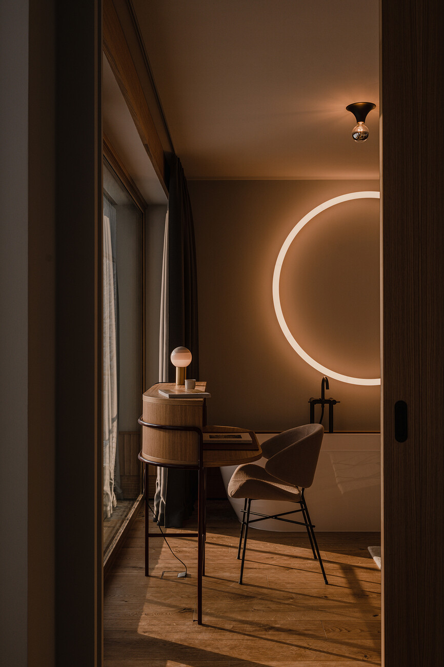Piotr Wisniewski: The history of the place (Bad Gastein) itself inspired me the most. The hotel is a former spa from the 60s. Instead of trying to whitewash its past, we decided to tell its story. We saw a great opportunity in the hotel's foundations: a spacious lobby connected to the restaurant, generous rooms and an expansive outdoor area. The interior concept is based on a combination of geographical and historical context. I would describe it as an alpine resort design with a 60s nostalgia and elements of a Viennese coffee house.
