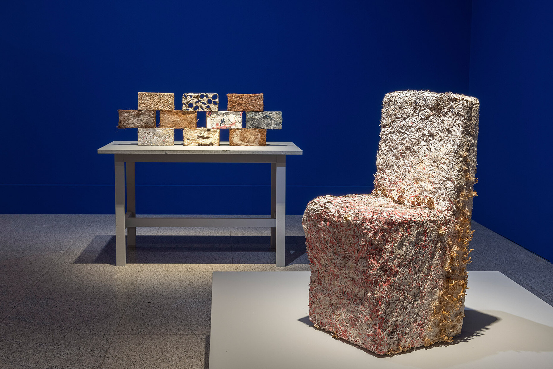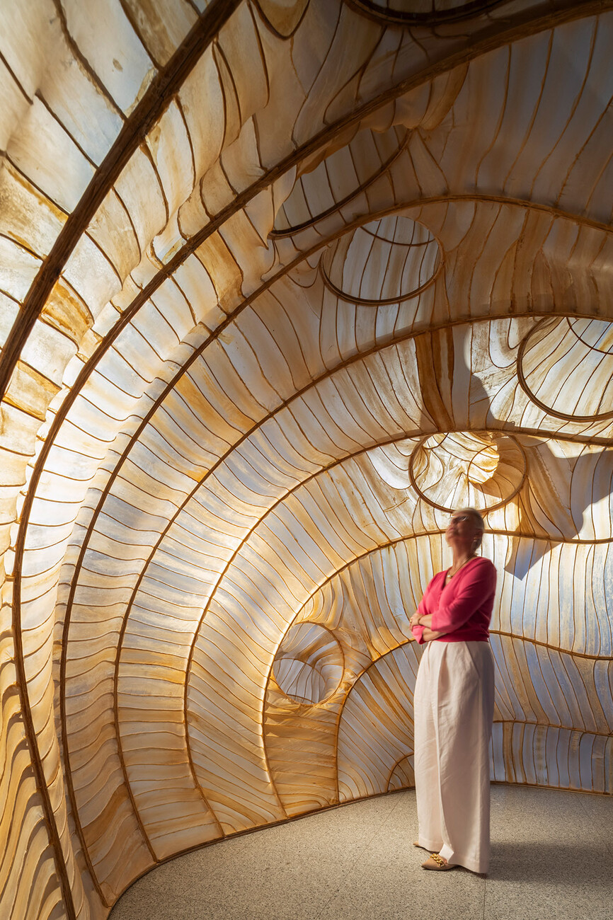 The highlight will be presented on the museum square: ‘Vert’ – a green wooden beam construction by AHEC, Diez Office and OMC°C that helps cool public spaces and promote biodiversity in urban environments. Meanwhile, the foyer of the Bundeskunsthalle will feature Tree.ONE by EcoLogicStudio (Claudia Pasquero/Marco Poletto), a ceiling-high installation consisting of a synthetic tree grown from microalgae that absorbs CO2 from the atmosphere and converts it into biomaterial. For the exhibition design, the architecture firm MVRDV Rotterdam has used almost exclusively materials already available in the Bundeskunsthalle. WEtransFORM is an initiative of the Bundeskunsthalle in partnership with the New European Bauhaus and transform.NRW.