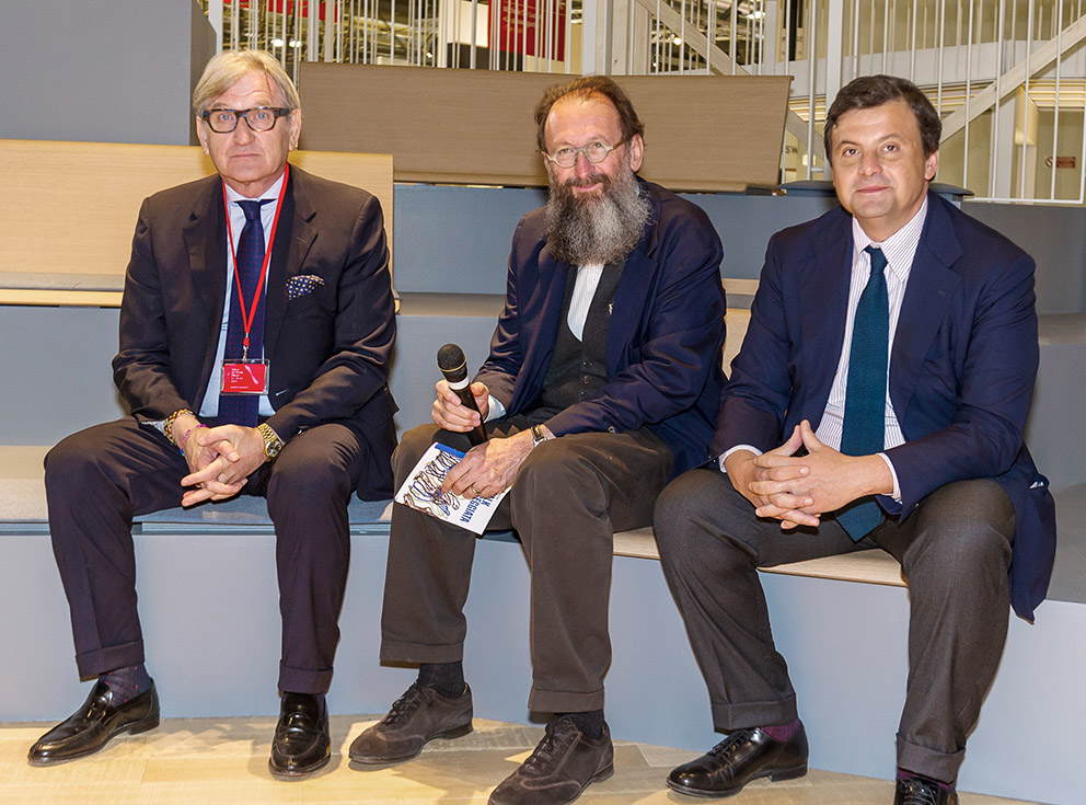 „Lighting, ambience, temperature, humidity, all these things can transform office spaces into different ones“, says Michele De Lucchi (in the middle) on „workplace 3.0“. Photo © Salone Ufficio