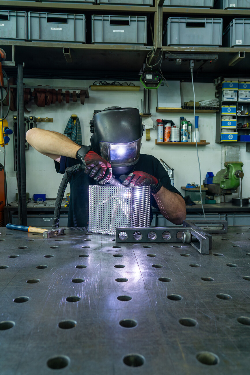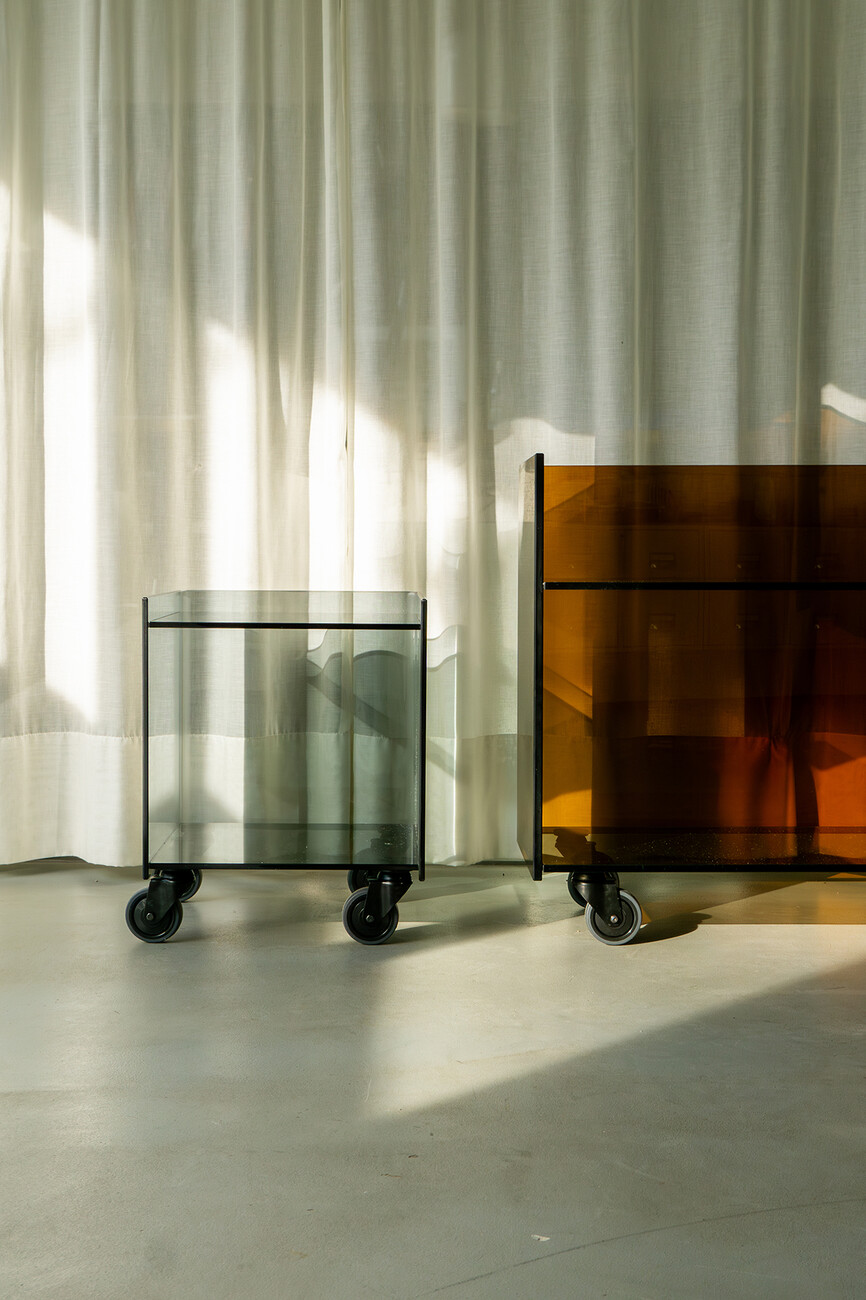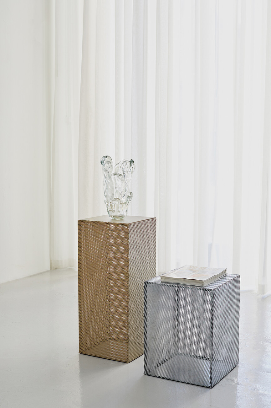 A current project with FÓLK Reykjavik, a company originally from Iceland and now based in Copenhagen, shows that he has long since thought beyond the materials of his training profession: Together, they are launching Götschl's first piece of furniture – a side table collection made of folded perforated sheet metal, assembled into cubes and available in various colours and sizes. ‘The design was originally created from waste and leftover pieces from the air conditioning industry,’ says Götschl. Such considerations – arising against the backdrop of current sustainability discussions – are driving the designer, who currently rents office space in an old industrial hall in Munich's design league.