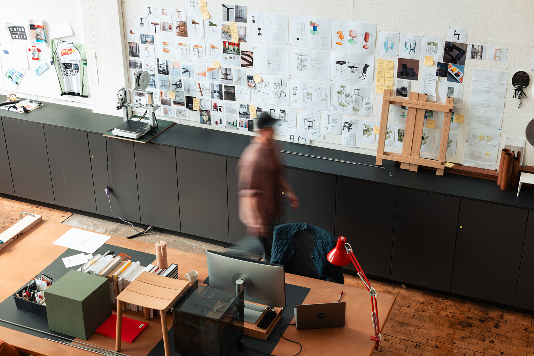 You can hear Marcus Götschl's origins in his accent. The sing-song quality of his voice and his rolled R are unmistakable indicators of the designer's home region on Lake Chiemsee in Bavaria. However, it was by no means a foregone conclusion that he would choose this profession. His mother was a business economist in his grandfather's company and his father was a police officer. ‘I didn't have much contact with design,’ Götschl recalls with a smile. He adds: ‘I knew I wanted to do something manual.’ So he trained as a carpenter, working with wood and learning about the material and its properties from the ground up. He attended schools for woodworking and design in Garmisch-Partenkirchen and eventually qualified as a master craftsman. The carpentry workshop where Marcus Götschl works produces furniture and kitchens. From measuring and planning to development, manufacturing and assembly, he is involved in the entire process from the initial idea to the finished product. It's a holistic approach that has left its mark. ‘Perhaps that's where my penchant for clever designs comes from,’ says Götschl today.