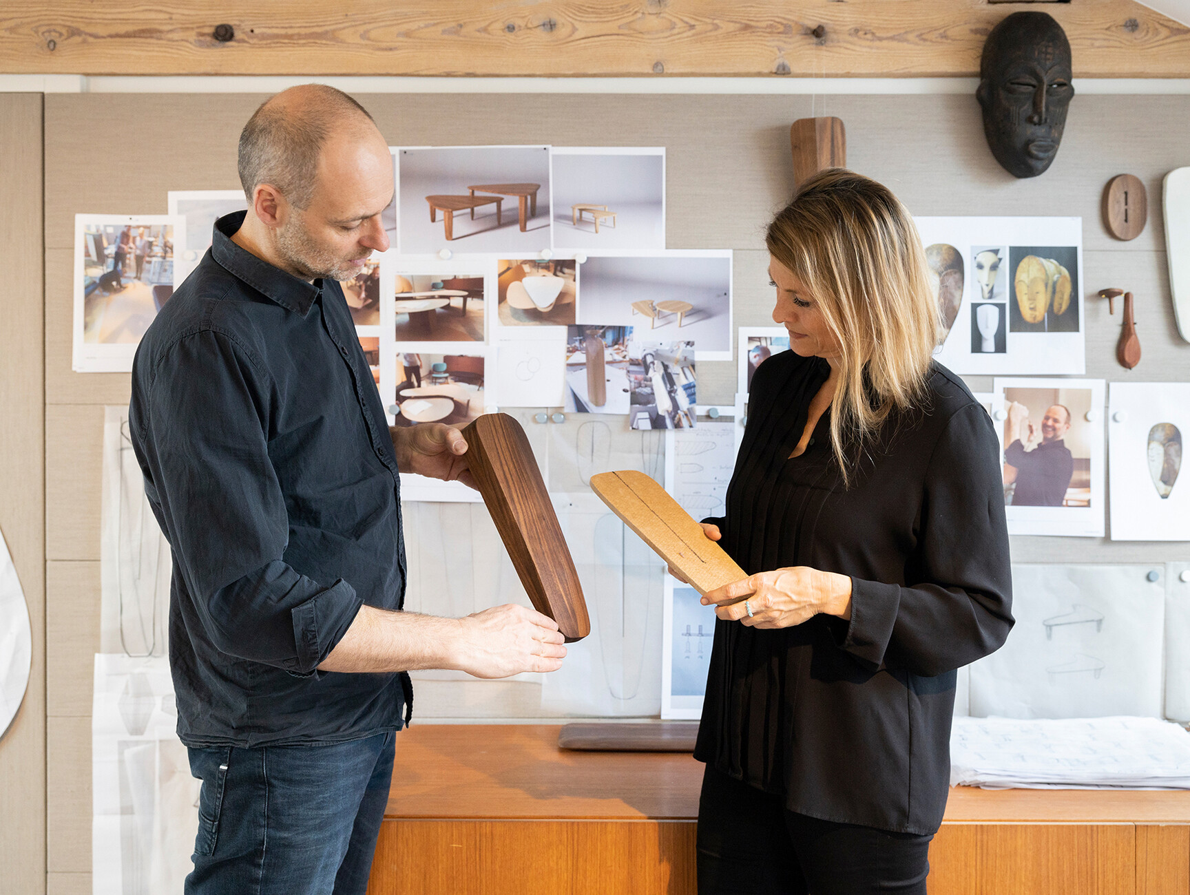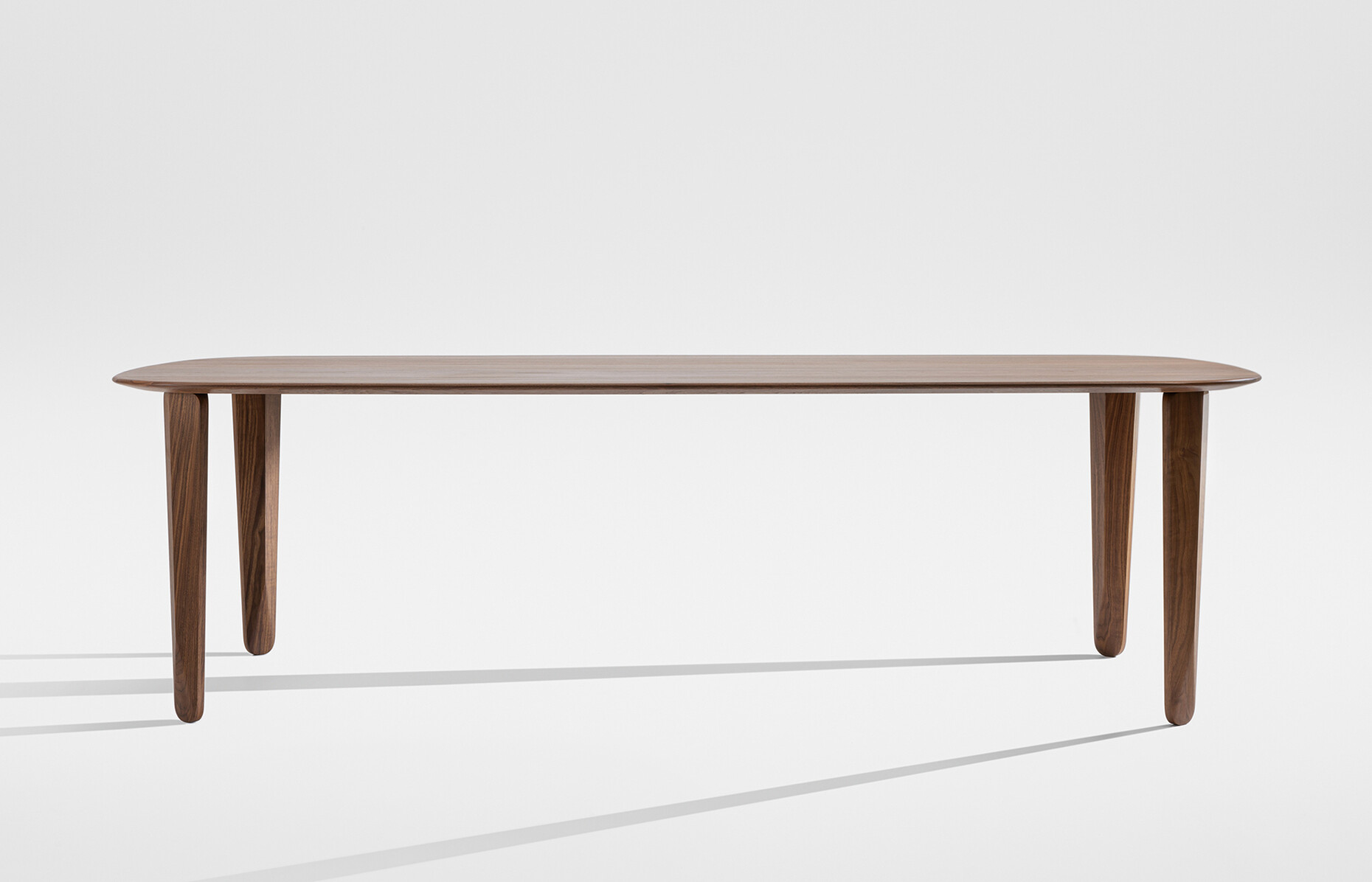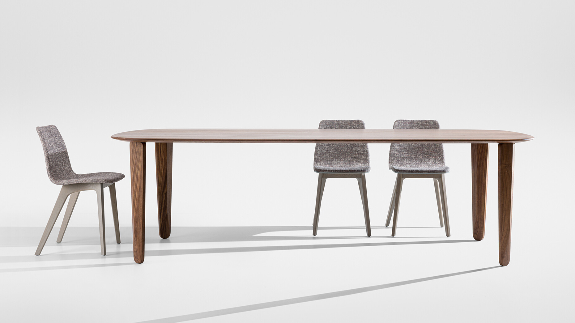 Claudia Kleine and Jörg Kürschner of office for interior architecture and design Formstelle have further developed their "KUYU" collection for Zeitraum with "KUYU DINE". To complement the coffee tables, the designer duo has now added a dining table that makes a statement in the room: 75 centimetres high and made of solid wood - optionally white oiled ash, oak, coloured oak stain, American walnut or European walnut. The sculptural design of the table legs of "KUYU DINE", reminiscent of the shape of African wooden masks or the geometric appearance of pear-shaped diamonds, also contributes to its strong presence. There are three options to choose from for the tabletop: Rectangular, Convex and Round. Zeitraum also leaves many options to choose from when it comes to the size of the tops, from 100 centimetres wide to 280 centimetres wide for the rectangular version, from 120 to 280 centimetres for the convex shape to the range of 120 to 150 centimetres for the round model. (am)