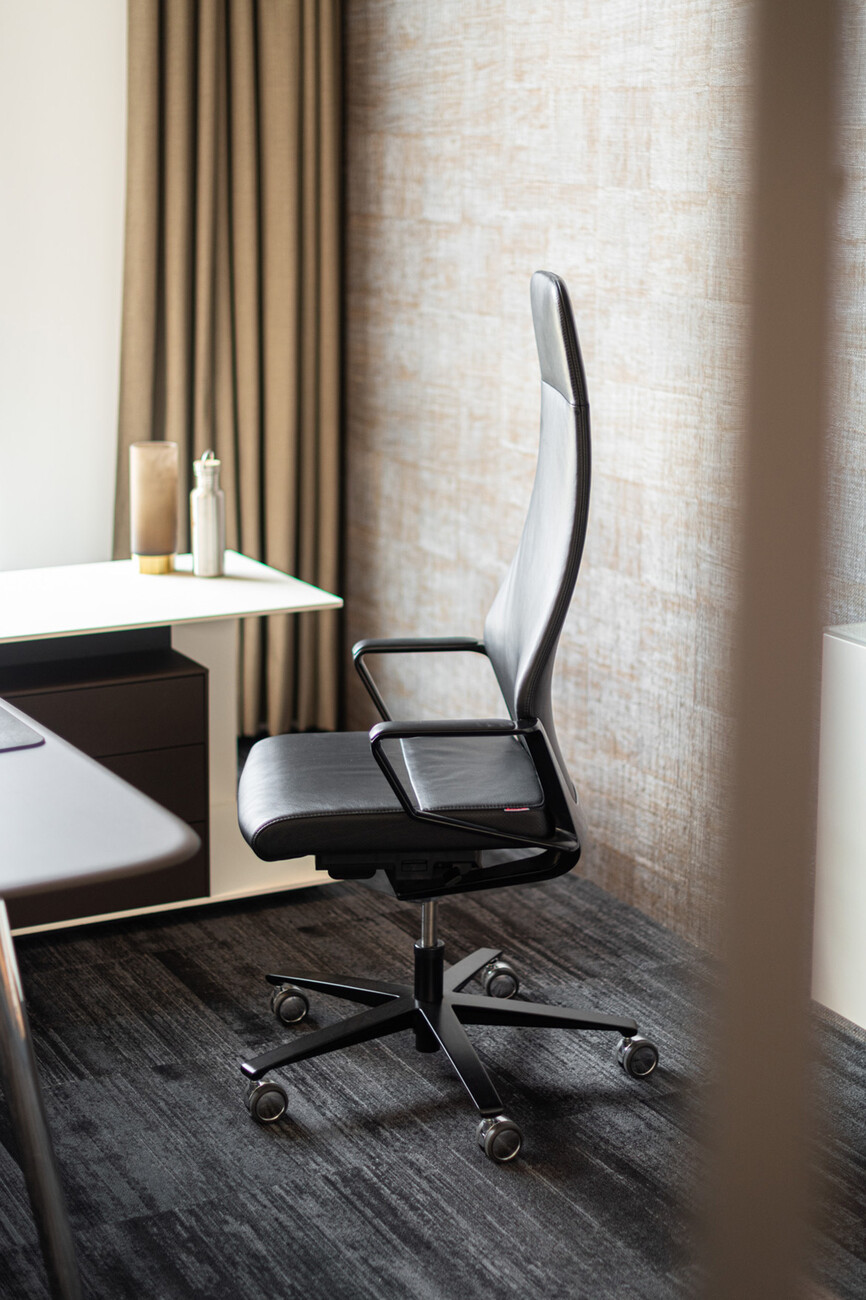 Help is at hand, however, in the guise of products by longstanding Swiss manufacturer Züco, which is now part of the Dauphin Group. Züco has been building furniture to the highest standards of craftsmanship for nearly 100 years now. As a company with its roots in saddlery, it maintains a notable expertise in leatherwork and upholstery that forms its own brand essence to this day. Building on this, Züco creates seating which, in its overall form, its details and the fine materials used, serves to emphasize the high-end aspirations of the business.